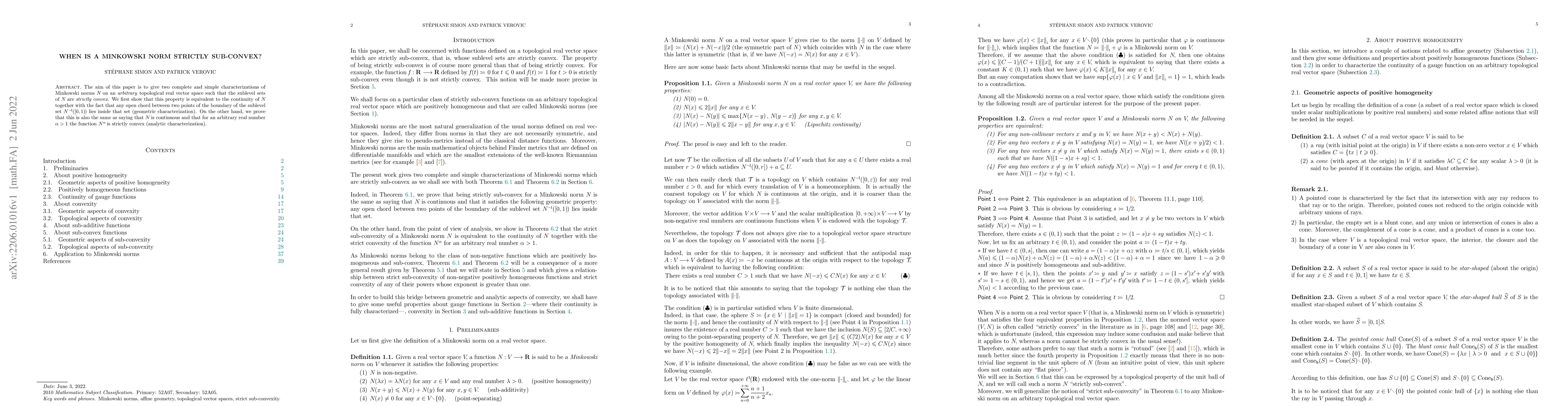 The aim of this paper is to give two complete and simple characterizations of Minkowski norms N on an arbitrary topological real vector space such that the sublevel sets of N are strictly convex. We first show that this property is equivalent to the continuity of N together with the fact that any open chord between two points of the boundary of the sublevel set N^{-1}([0, 1)) lies inside that set (geometric characterization). On the other hand, we prove that this is also the same as saying that N is continuous and that for an arbitrary real number $\alpha$ > 1 the function N^$\alpha$ is strictly convex (analytic characterization).