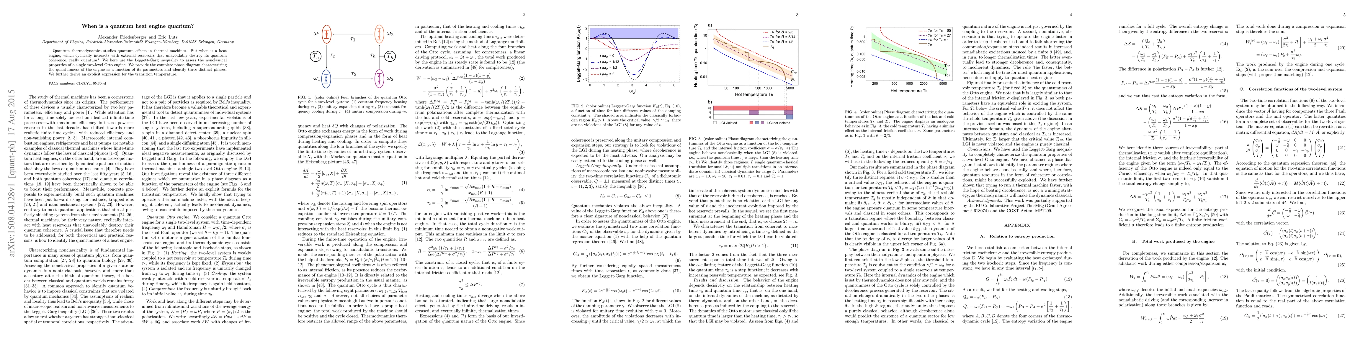 Quantum thermodynamics studies quantum effects in thermal machines. But when is a heat engine, which cyclically interacts with external reservoirs that unavoidably destroy its quantum coherence, really quantum? We here use the Leggett-Garg inequality to assess the nonclassical properties of a single two-level Otto engine. We provide the complete phase diagram characterizing the quantumness of the engine as a function of its parameters and identify three distinct phases. We further derive an explicit expression for the transition temperature.
