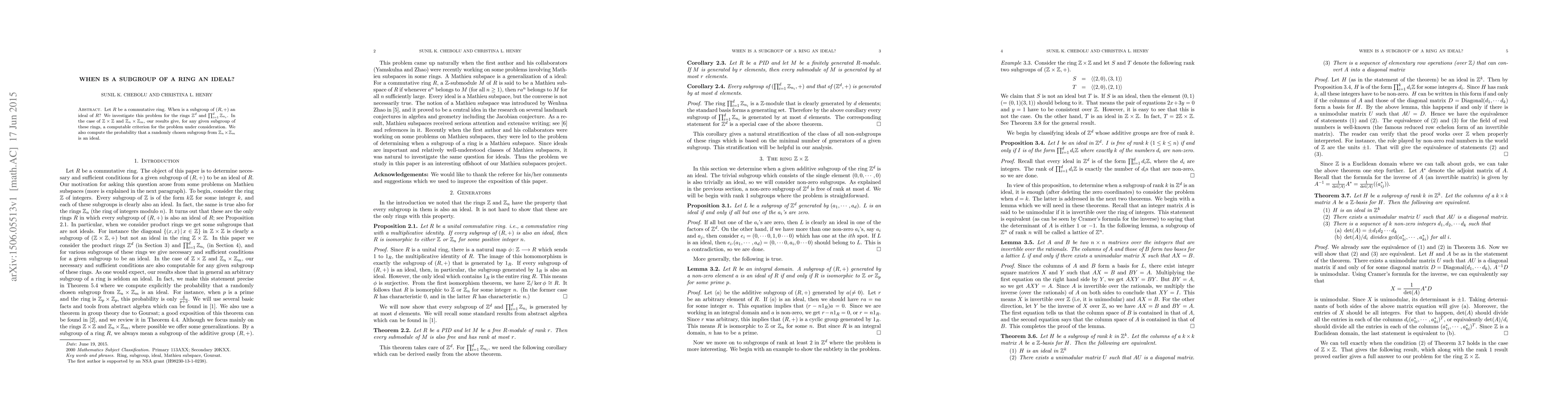 This paper explores the conditions under which subgroups of specific commutative rings, namely $\mathbb{Z}^{d}$ and $\prod_{i=1}^{d} \mathbb{Z}_{n_{i}}$, qualify as ideals. It provides computable criteria and probability estimates for certain cases, such as $\mathbb{Z} \times \mathbb{Z}$ and $\mathbb{Z}_n \times \mathbb{Z}_m$.