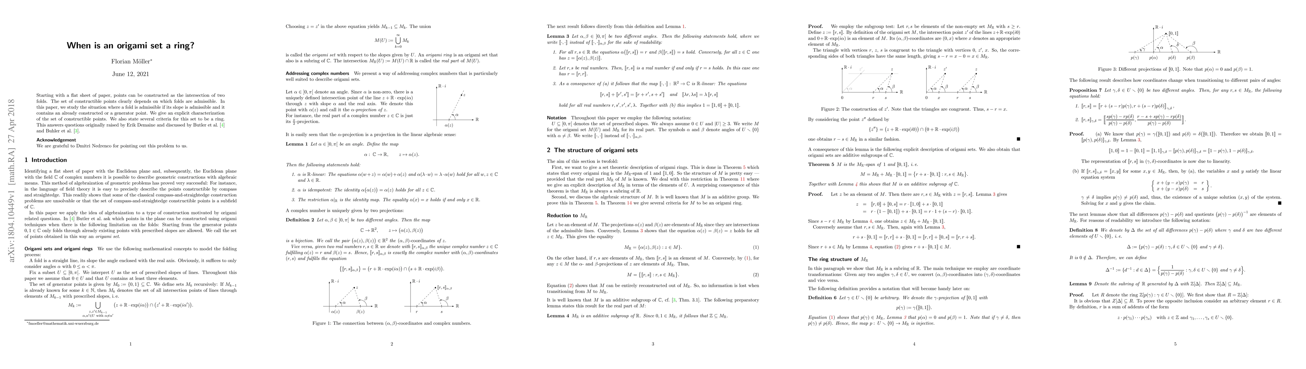 This paper characterizes the set of points constructible through admissible folds on a flat sheet of paper, providing explicit criteria for this set to form a ring, addressing questions posed by Demaine and others. The criteria depend on the admissibility of fold slopes and the inclusion of pre-constructed or generator points.