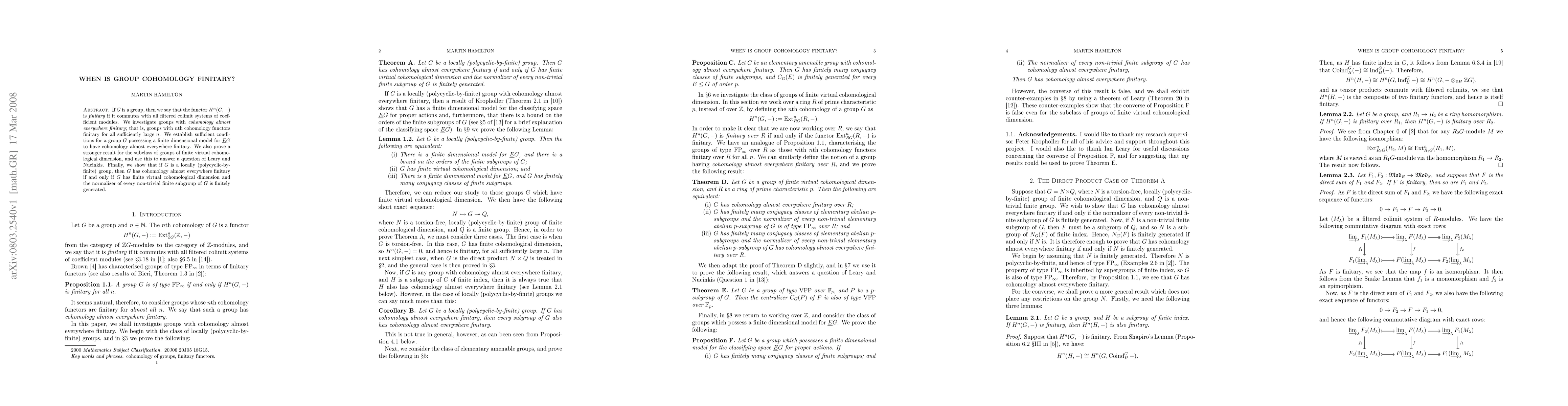 This paper investigates groups whose cohomology functors $H^n(G,-)$ are finitary for sufficiently large $n$. It establishes conditions for such groups, particularly focusing on groups with finite virtual cohomological dimension, and resolves a question posed by Leary and Nucinkis.