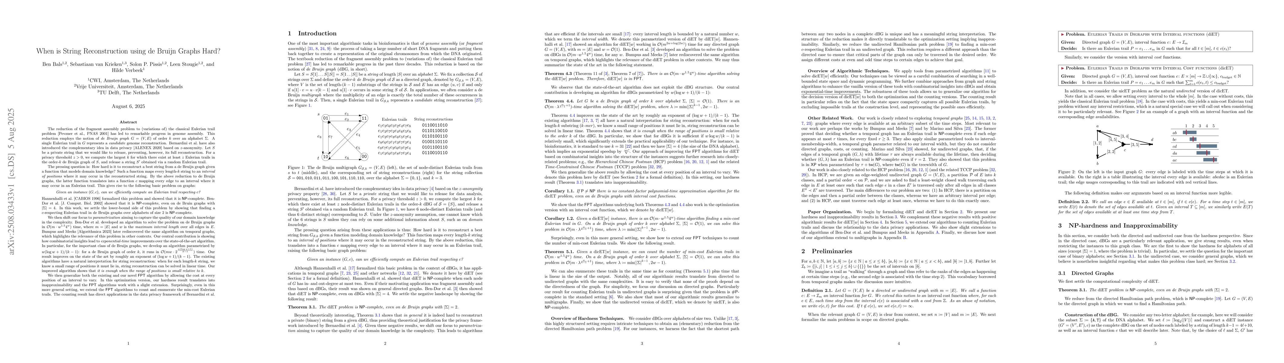 This research is crucial for understanding the limits and possibilities of string reconstruction from de Bruijn graphs, which have applications in genome assembly and data privacy.