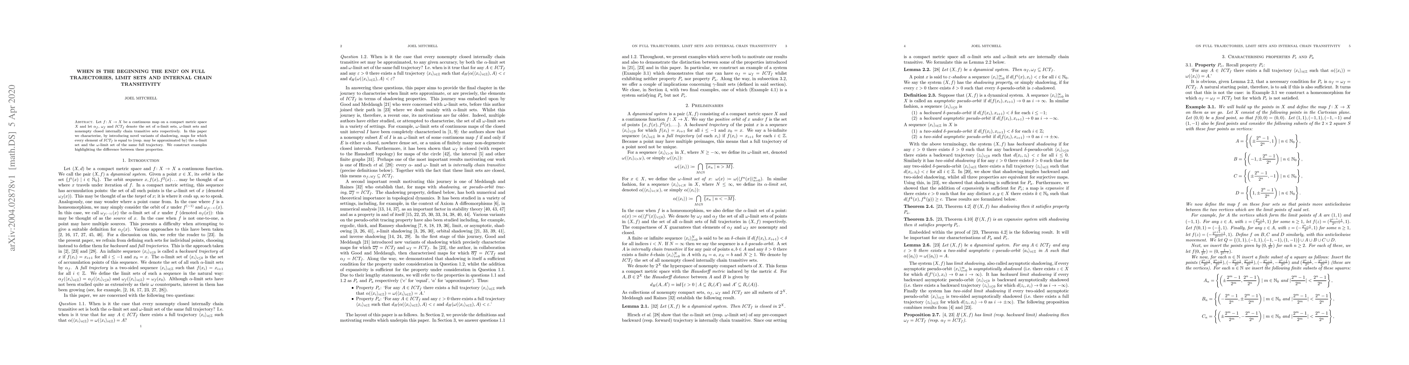 Let $f \colon X \to X$ be a continuous map on a compact metric space $X$ and let $\alpha_f$, $\omega_f$ and $ICT_f$ denote the set of $\alpha$-limit sets, $\omega$-limit sets and nonempty closed internally chain transitive sets respectively. In this paper we characterise, by introducing novel variants of shadowing, maps for which every element of $ICT_f$ is equal to (resp. may be approximated by) the $\alpha$-limit set and the $\omega$-limit set of the same full trajectory. We construct examples highlighting the difference between these properties.