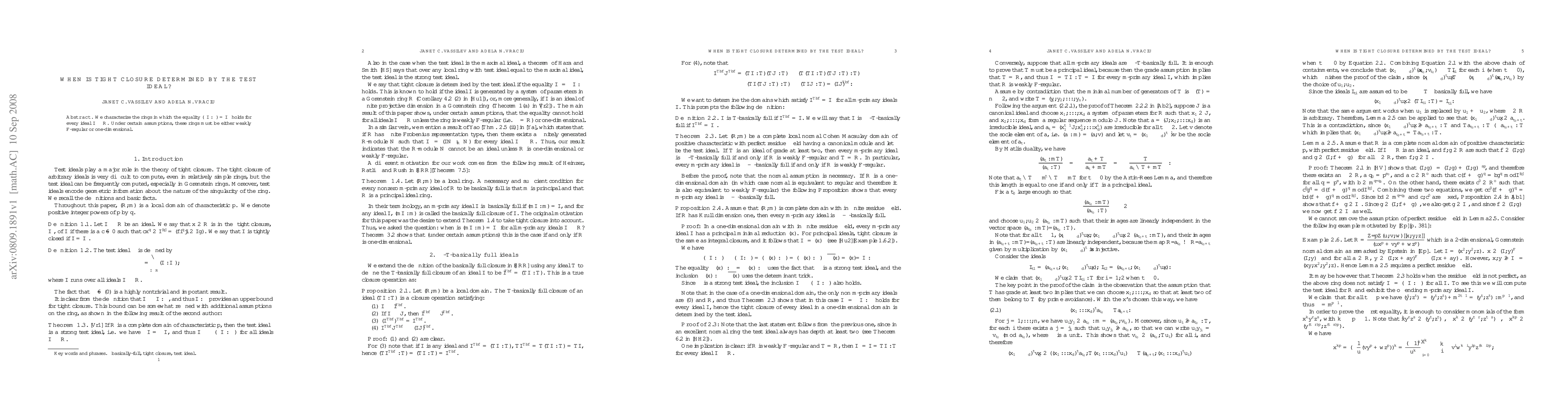 This research paper explores when a tight closure condition is determined by the test ideal in rings, revealing that these conditions apply to either weakly F-regular or one-dimensional rings under certain assumptions.