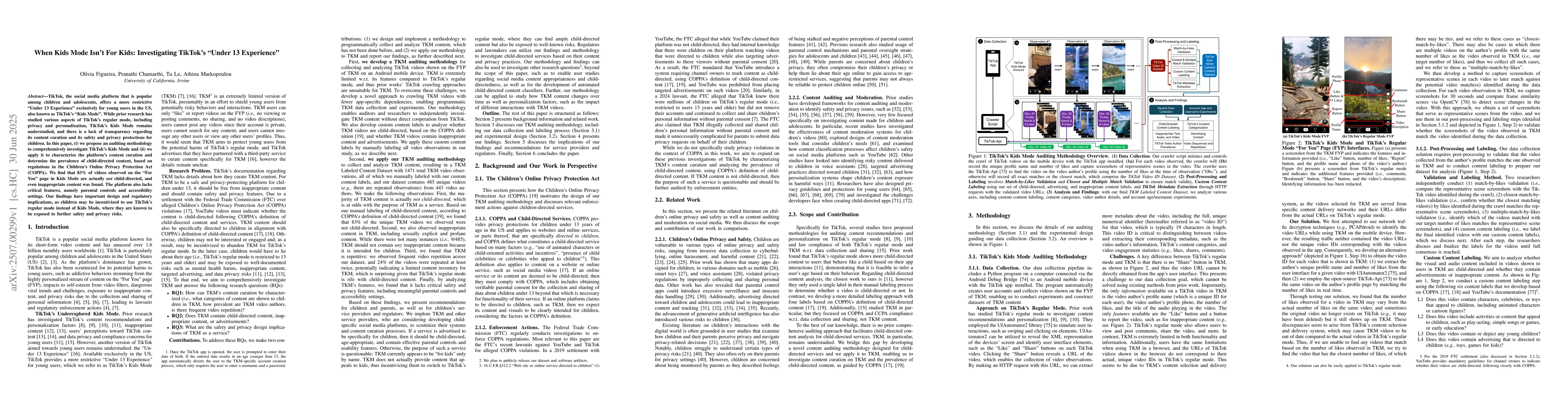 TikTok, the social media platform that is popular among children and adolescents, offers a more restrictive "Under 13 Experience" exclusively for young users in the US, also known as TikTok's "Kids Mode". While prior research has studied various aspects of TikTok's regular mode, including privacy and personalization, TikTok's Kids Mode remains understudied, and there is a lack of transparency regarding its content curation and its safety and privacy protections for children. In this paper, (i) we propose an auditing methodology to comprehensively investigate TikTok's Kids Mode and (ii) we apply it to characterize the platform's content curation and determine the prevalence of child-directed content, based on regulations in the Children's Online Privacy Protection Act (COPPA). We find that 83% of videos observed on the "For You" page in Kids Mode are actually not child-directed, and even inappropriate content was found. The platform also lacks critical features, namely parental controls and accessibility settings. Our findings have important design and regulatory implications, as children may be incentivized to use TikTok's regular mode instead of Kids Mode, where they are known to be exposed to further safety and privacy risks.
