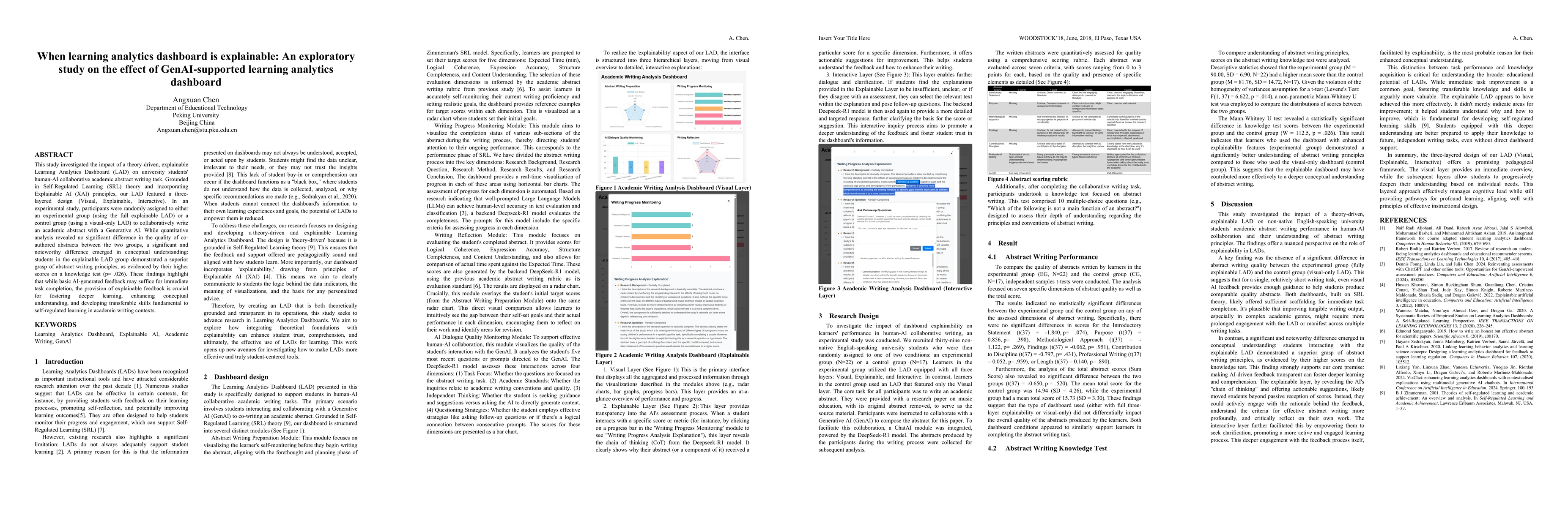 This study investigated the impact of a theory-driven, explainable Learning Analytics Dashboard (LAD) on university students' human-AI collaborative academic abstract writing task. Grounded in Self-Regulated Learning (SRL) theory and incorporating Explainable AI (XAI) principles, our LAD featured a three-layered design (Visual, Explainable, Interactive). In an experimental study, participants were randomly assigned to either an experimental group (using the full explainable LAD) or a control group (using a visual-only LAD) to collaboratively write an academic abstract with a Generative AI. While quantitative analysis revealed no significant difference in the quality of co-authored abstracts between the two groups, a significant and noteworthy difference emerged in conceptual understanding: students in the explainable LAD group demonstrated a superior grasp of abstract writing principles, as evidenced by their higher scores on a knowledge test (p= .026). These findings highlight that while basic AI-generated feedback may suffice for immediate task completion, the provision of explainable feedback is crucial for fostering deeper learning, enhancing conceptual understanding, and developing transferable skills fundamental to self-regulated learning in academic writing contexts.