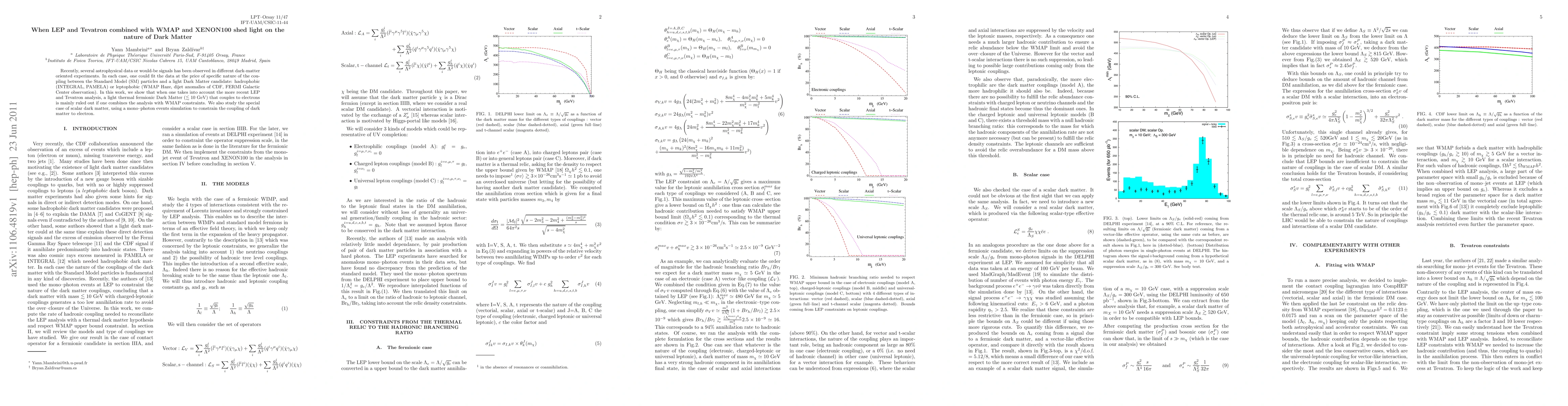 A study combining data from LEP, Tevatron, WMAP, and XENON100 experiments rules out the existence of a light thermal fermionic Dark Matter candidate that couples to electrons. Instead, it suggests that scalar dark matter is more plausible with certain constraints.