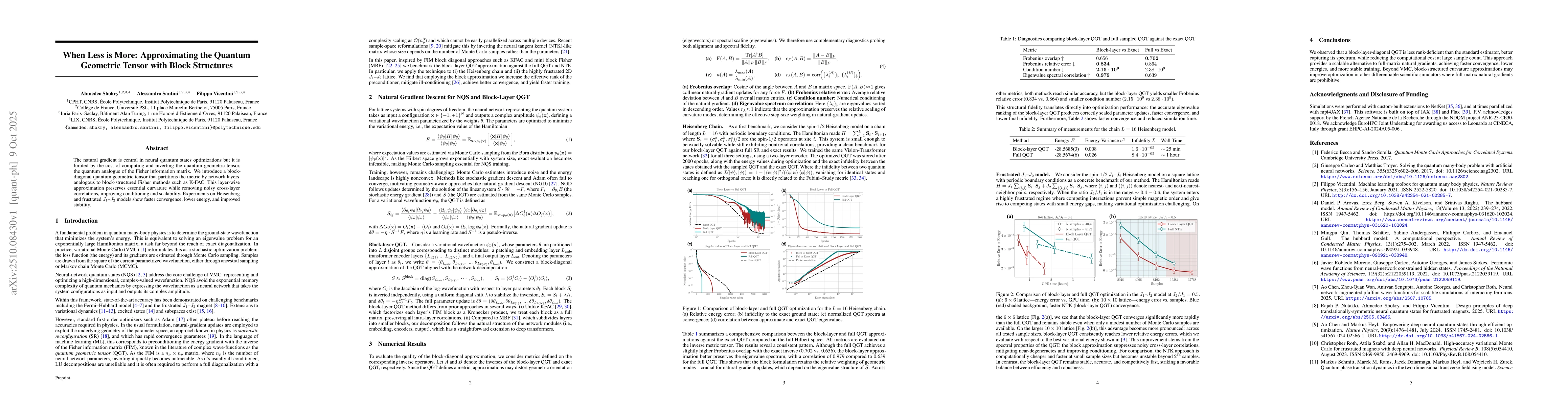 The paper develops a block-layer QGT approximation that maintains structural fidelity with the exact QGT while reducing computational complexity, enabling efficient natural gradient descent for neural quantum states.