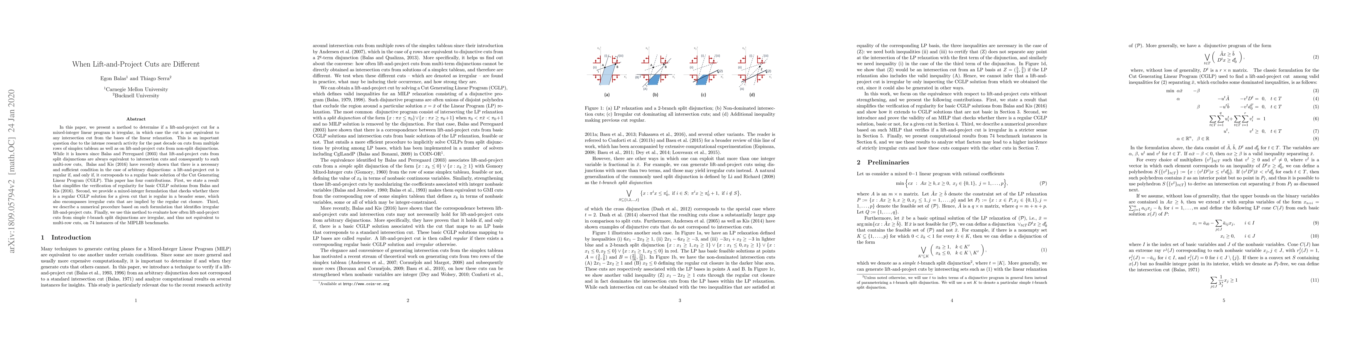 In this paper, we present a method to determine if a lift-and-project cut for a mixed-integer linear program is irregular, in which case the cut is not equivalent to any intersection cut from the bases of the linear relaxation. This is an important question due to the intense research activity for the past decade on cuts from multiple rows of simplex tableau as well as on lift-and-project cuts from non-split disjunctions. While it is known since Balas and Perregaard (2003) that lift-and-project cuts from split disjunctions are always equivalent to intersection cuts and consequently to such multi-row cuts, Balas and Kis (2016) have recently shown that there is a necessary and sufficient condition in the case of arbitrary disjunctions: a lift-and-project cut is regular if, and only if, it corresponds to a regular basic solution of the Cut Generating Linear Program (CGLP). This paper has four contributions. First, we state a result that simplifies the verification of regularity for basic CGLP solutions from Balas and Kis (2016). Second, we provide a mixed-integer formulation that checks whether there is a regular CGLP solution for a given cut that is regular in a broader sense, which also encompasses irregular cuts that are implied by the regular cut closure. Third, we describe a numerical procedure based on such formulation that identifies irregular lift-and-project cuts. Finally, we use this method to evaluate how often lift-and-project cuts from simple $t$-branch split disjunctions are irregular, and thus not equivalent to multi-row cuts, on 74 instances of the MIPLIB benchmarks.