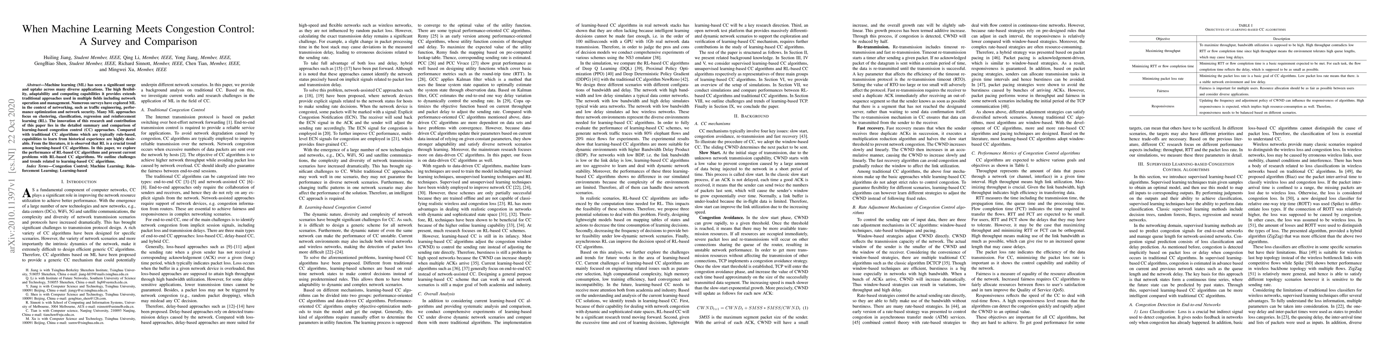 Machine learning (ML) has seen a significant surge and uptake across many diverse applications. The high flexibility, adaptability and computing capabilities it provides extends traditional approaches used in multiple fields including network operation and management. Numerous surveys have explored ML in the context of networking, such as traffic engineering, performance optimization and network security. Many ML approaches focus on clustering, classification, regression and reinforcement learning (RL). The innovation of this research and contribution of this paper lies in the detailed summary and comparison of learning-based congestion control (CC) approaches. Compared with traditional CC algorithms which are typically rule-based, capabilities to learn from historical experience are highly desirable. From the literature, it is observed that RL is a crucial trend among learning-based CC algorithms. In this paper, we explore the performance of RL-based CC algorithms and present current problems with RL-based CC algorithms. We outline challenges and trends related to learning-based CC algorithms.