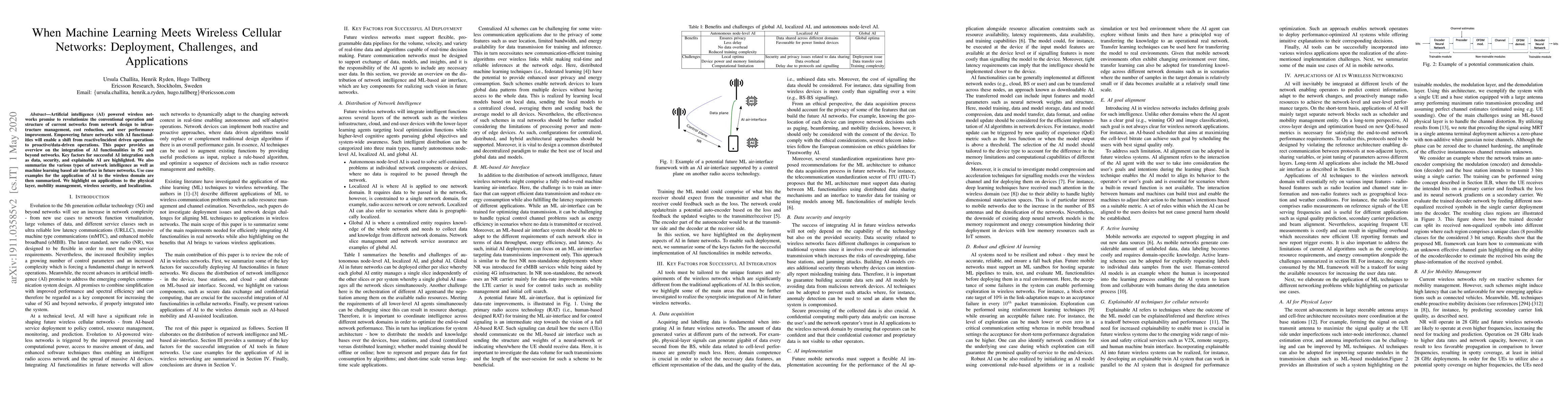 This paper examines the integration of AI in future wireless cellular networks, focusing on the benefits such as proactive operations and cost reduction. It highlights key challenges including data management, security, and explainable AI, while summarizing applications in physical layer, mobility, security, and localization.