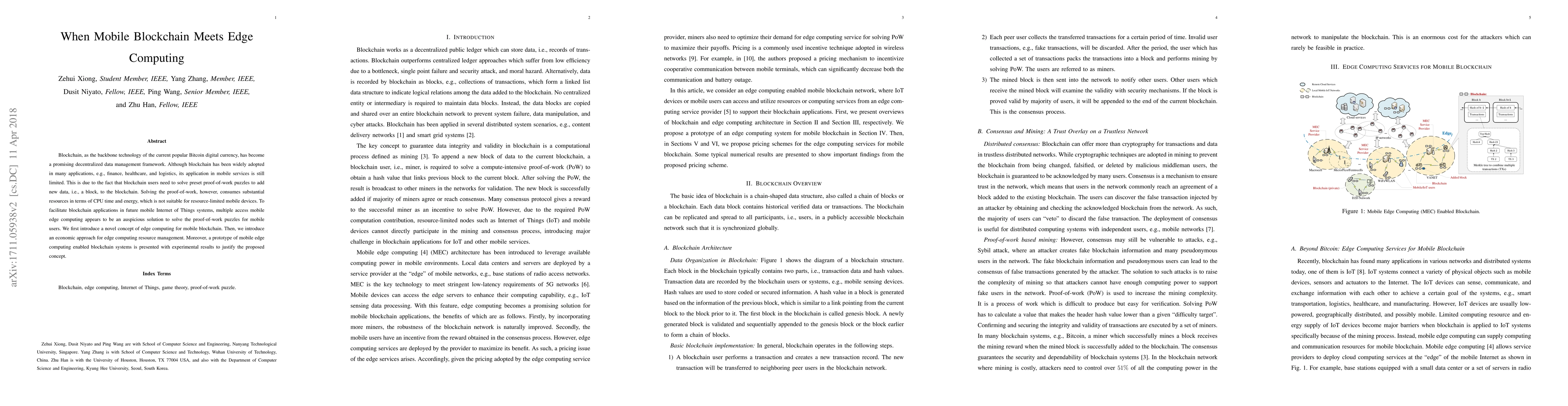 This paper explores integrating mobile blockchain with edge computing to address resource constraints in mobile devices, proposing a novel edge computing framework for blockchain and an economic approach for resource management. Experimental results demonstrate the feasibility of this mobile edge computing enabled blockchain system.