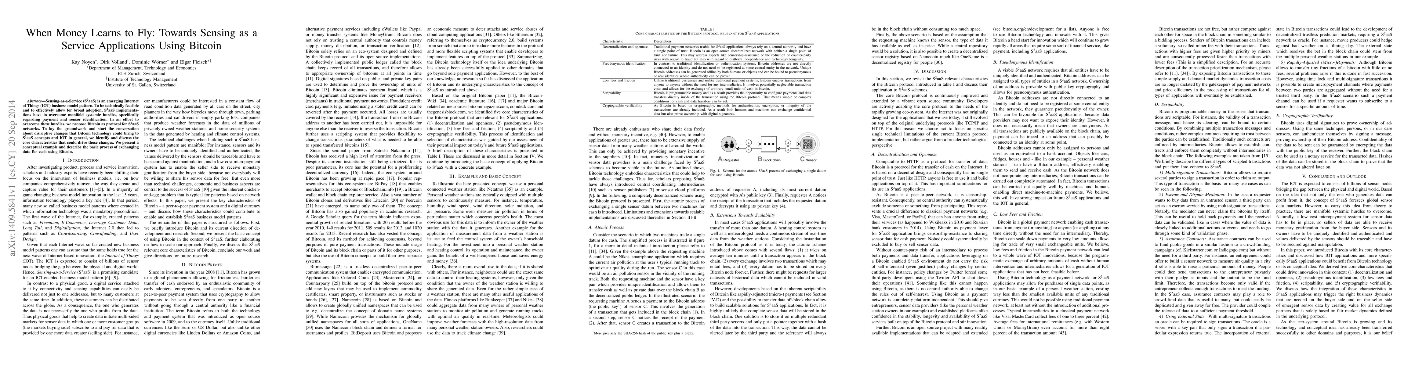 This paper proposes using Bitcoin as a payment protocol for Sensing-as-a-Service (S2aaS) networks to overcome systemic hurdles in IoT adoption. It explores Bitcoin's potential to disrupt S2aaS concepts and discusses a conceptual example of data exchange for Bitcoin.