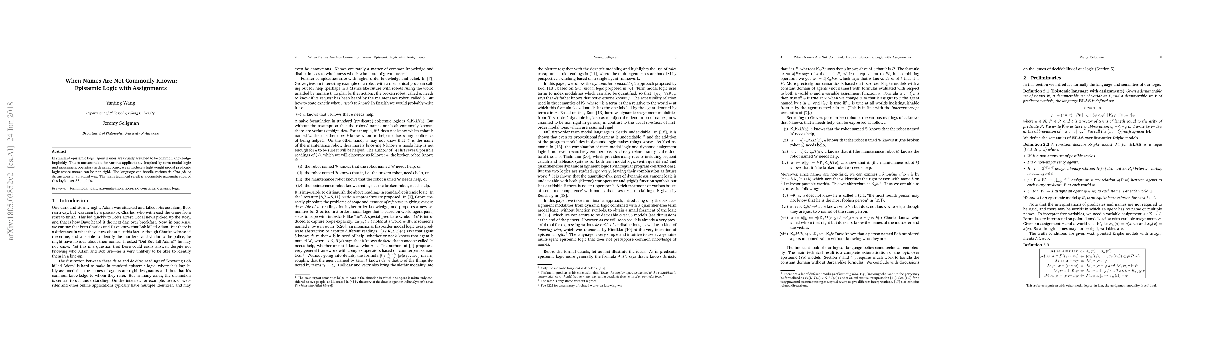 Researchers develop a new epistemic logic framework that allows for non-rigid agent names, enabling better handling of de dicto and de re distinctions in various applications. The framework provides a complete axiomatisation over S5 models, offering improved reasoning capabilities.