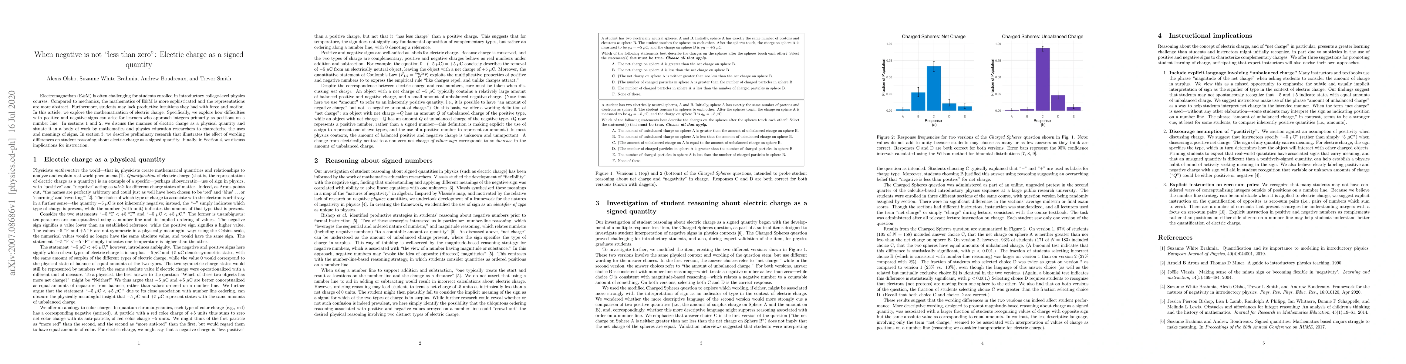Electromagnetism (E&M) is often challenging for students enrolled in introductory college-level physics courses. Compared to mechanics, the mathematics of E&M is more sophisticated and the representations are more abstract. Furthermore, students may lack productive intuitions they had with force and motion. In this article, we explore the mathematization of electric charge. Specifically, we explore how difficulties with positive and negative signs can arise for learners who approach integers primarily as positions on a number line.