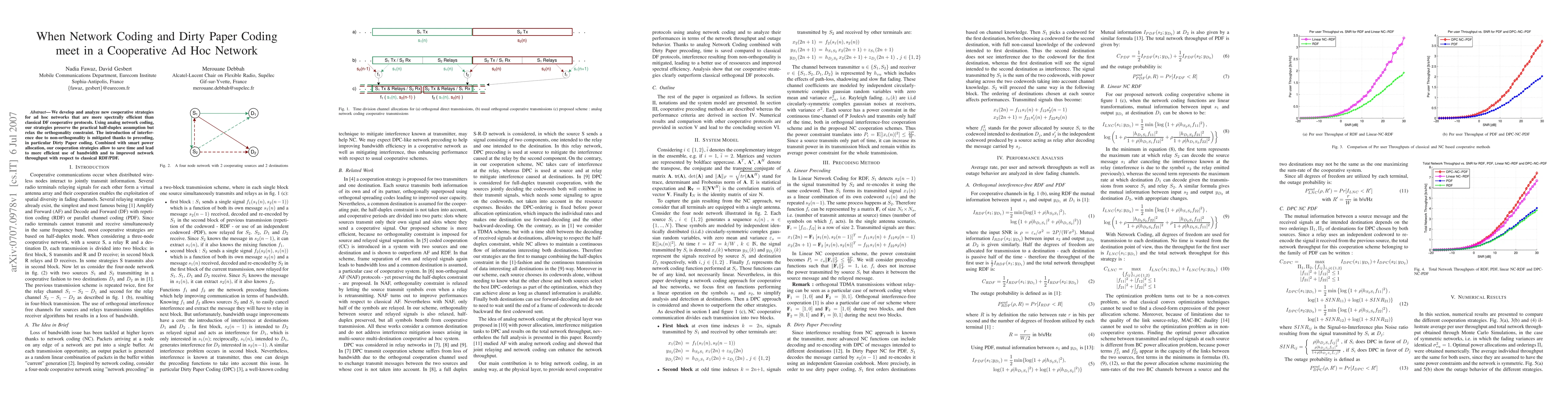 This paper proposes new cooperative strategies for ad hoc networks that enhance spectral efficiency by combining network coding with Dirty Paper coding to mitigate interference, leading to improved bandwidth use and network throughput compared to traditional DF protocols. The strategies maintain practical half-duplex communication while optimizing power allocation.