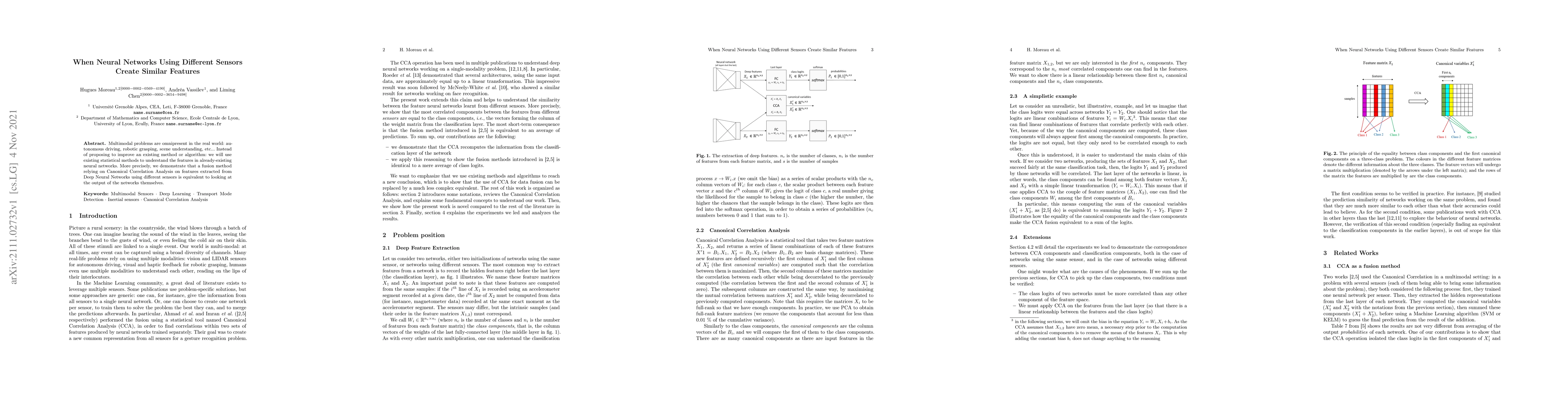 Multimodal problems are omnipresent in the real world: autonomous driving, robotic grasping, scene understanding, etc... We draw from the well-developed analysis of similarity to provide an example of a problem where neural networks are trained from different sensors, and where the features extracted from these sensors still carry similar information. More precisely, we demonstrate that for each sensor, the linear combination of the features from the last layer that correlates the most with other sensors corresponds to the classification components of the classification layer.