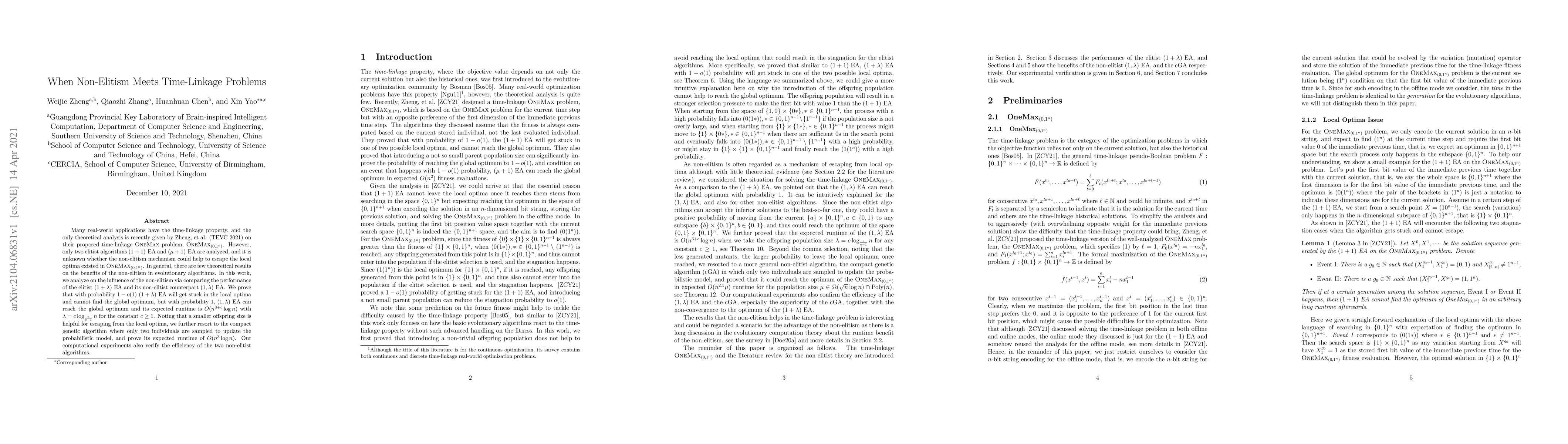 This paper investigates the impact of non-elitism in evolutionary algorithms on solving time-linkage problems, specifically the OneMax$_{(0,1^n)}$ problem. The study compares elitist (1+$\lambda$)EA and non-elitist (1,$\lambda$)EA, proving that the latter can reach the global optimum with high probability and an expected runtime of $O(n^{3+c}\log n)$. Experiments confirm the efficiency of non-elitist algorithms.