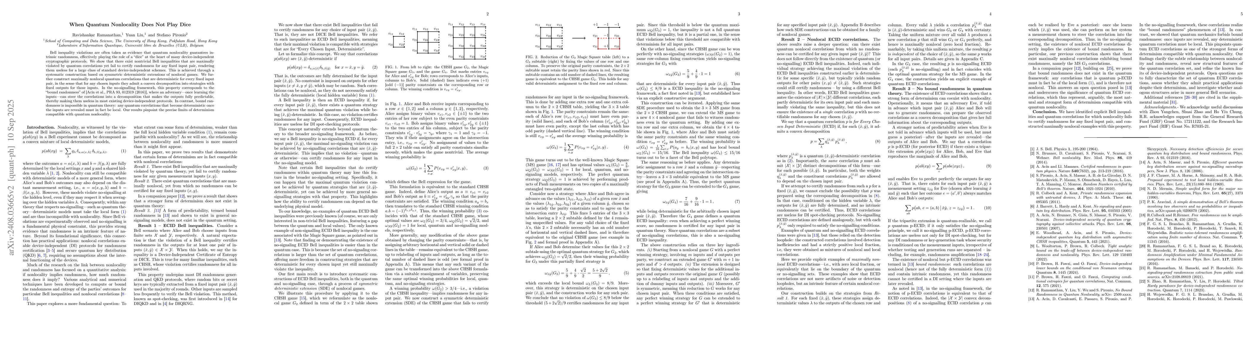 Bell inequality violations are often taken as evidence that quantum nonlocality guarantees intrinsic randomness, effectively playing the role of a "dice" at the heart of many device-independent cryptographic protocols. We show that there exist nontrivial Bell inequalities that are maximally violated by quantum correlations yet fail to certify randomness for any fixed input pair, rendering them useless for a large class of standard device-independent schemes. This is achieved through a systematic construction based on symmetric deterministic extensions of nonlocal games. We further construct maximally nonlocal quantum correlations that are deterministic for every fixed input pair, in the sense that for any chosen inputs they admit a convex decomposition into strategies with fixed outputs for those inputs. In the no-signalling framework, this property corresponds to the "bound randomness" of [Ac\'in et al., PRA 93, 012319 (2016)], where an adversary-once learning the inputs-can steer the correlations into a decomposition that makes the outputs fully predictable, thereby making them useless in most existing device-independent protocols. In contrast, bound randomness is impossible in quantum theory: any quantum correlations that become deterministic once the inputs are revealed must in fact be local. Our results pinpoint the precise limits of determinism compatible with quantum nonlocality.