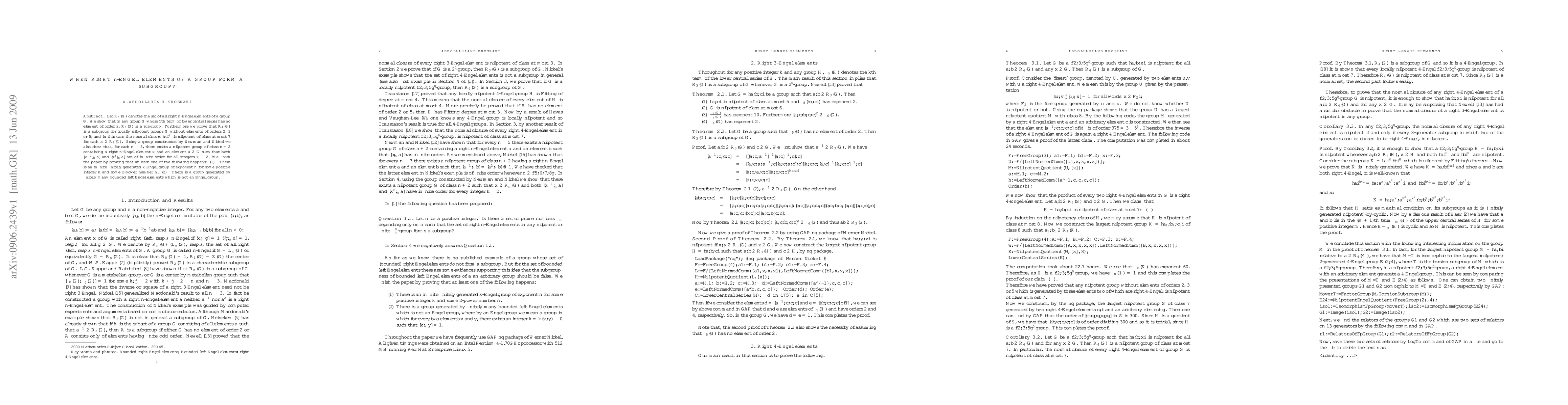 Summary: The paper examines conditions under which sets of right n-Engel elements in a group form a subgroup. It shows that $R_3(G)$ is a subgroup for groups without elements of order 2 in their 5th lower central series term, and $R_4(G)$ is a subgroup for locally nilpotent groups without elements of orders 2, 3, or 5. The paper also constructs counterexamples for higher n-values and concludes with results on k-Engel groups and bounded left Engel elements.