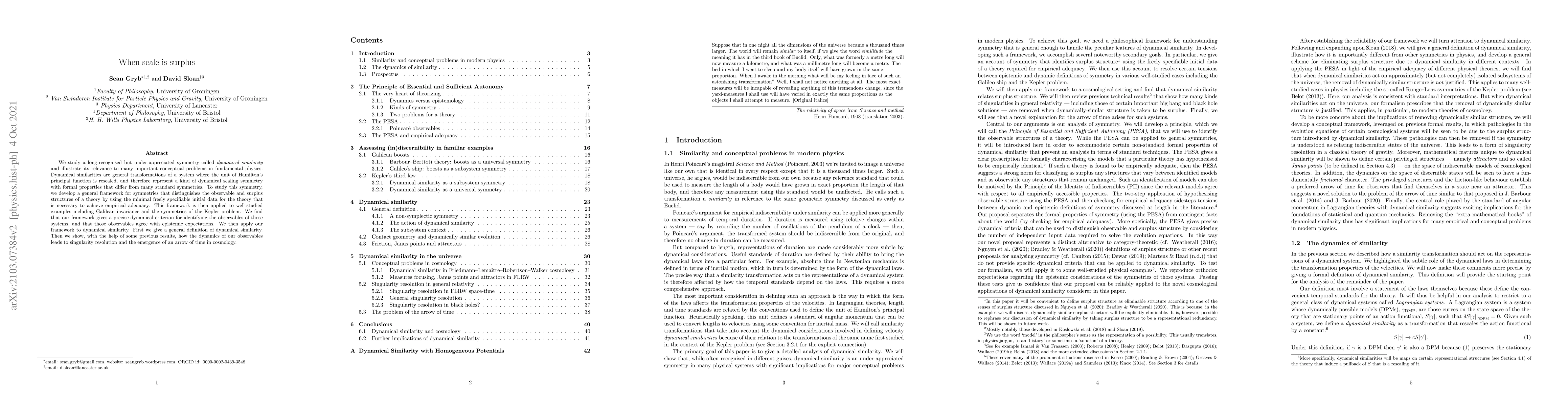 We study a long-recognised but under-appreciated symmetry called "dynamical similarity" and illustrate its relevance to many important conceptual problems in fundamental physics. Dynamical similarities are general transformations of a system where the unit of Hamilton's principal function is rescaled, and therefore represent a kind of dynamical scaling symmetry with formal properties that differ from many standard symmetries. To study this symmetry, we develop a general framework for symmetries that distinguishes the observable and surplus structures of a theory by using the minimal freely specifiable initial data for the theory that is necessary to achieve empirical adequacy. This framework is then applied to well-studied examples including Galilean invariance and the symmetries of the Kepler problem. We find that our framework gives a precise dynamical criterion for identifying the observables of those systems, and that those observables agree with epistemic expectations. We then apply our framework to dynamical similarity. First we give a general definition of dynamical similarity. Then we show, with the help of some previous results, how the dynamics of our observables leads to singularity resolution and the emergence of an arrow of time in cosmology.