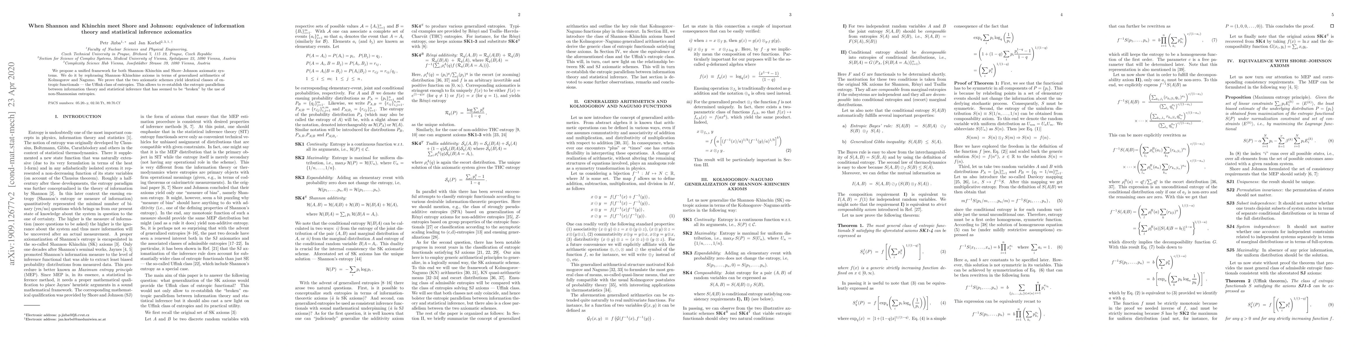 This paper establishes a unified framework for Shannon-Khinchin and Shore-Johnson axiomatic systems, demonstrating their equivalence through generalized arithmetics. It shows that both systems yield identical entropic functionals, re-establishing the connection between information theory and statistical inference.