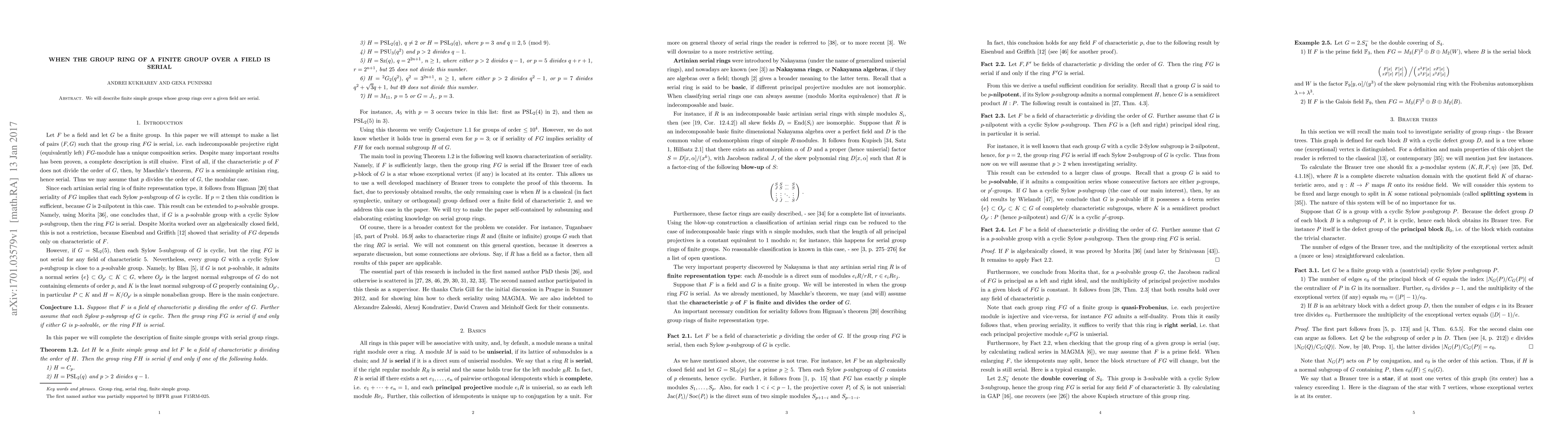 We make a list of finite simple groups whose group rings over a given field are serial.