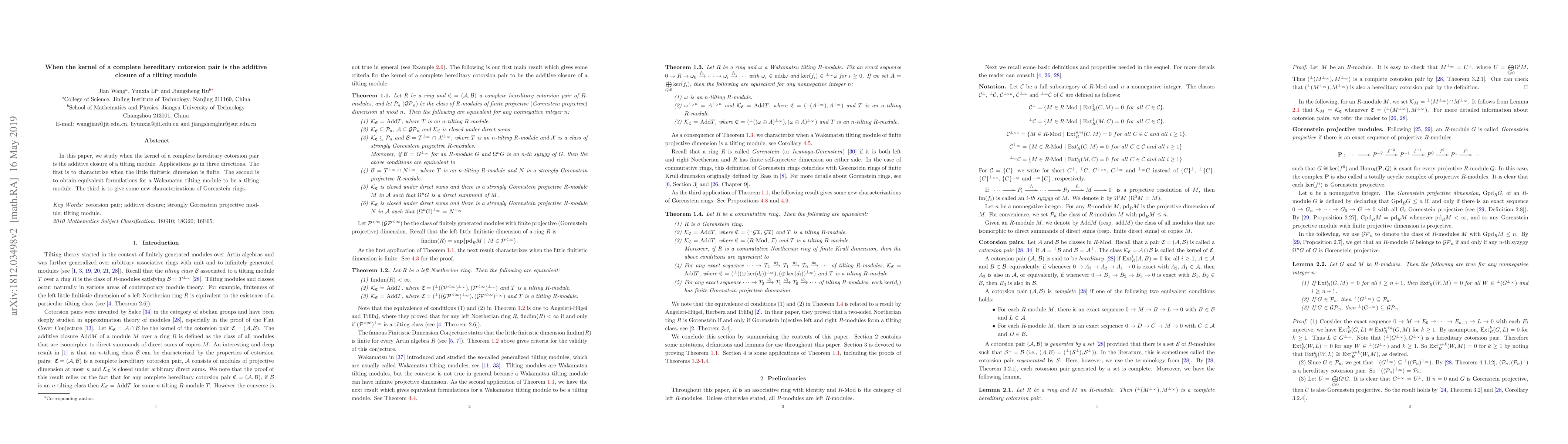 This paper explores when the kernel of a complete hereditary cotorsion pair is the additive closure of a tilting module, with applications to characterizing finite little finitistic dimension, equivalent formulations for Wakamatsu tilting modules, and new characterizations of Gorenstein rings.