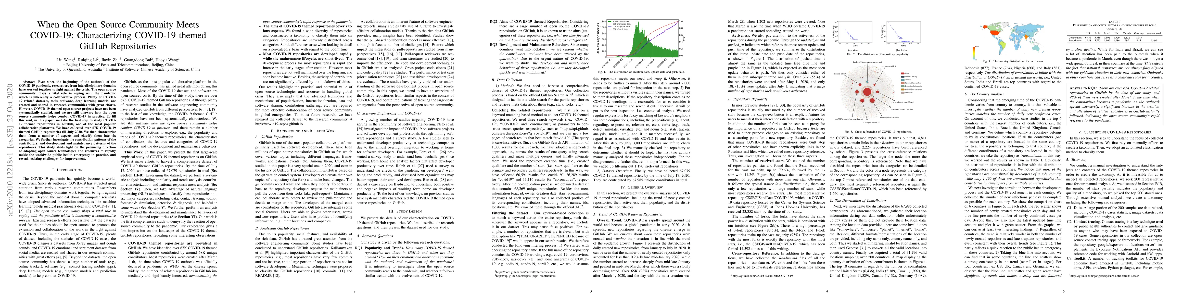 This paper systematically studies over 67K COVID-19 themed GitHub repositories to characterize their contributions, classifications, and development patterns, revealing the open source community's role in combating the pandemic and highlighting areas for improvement.