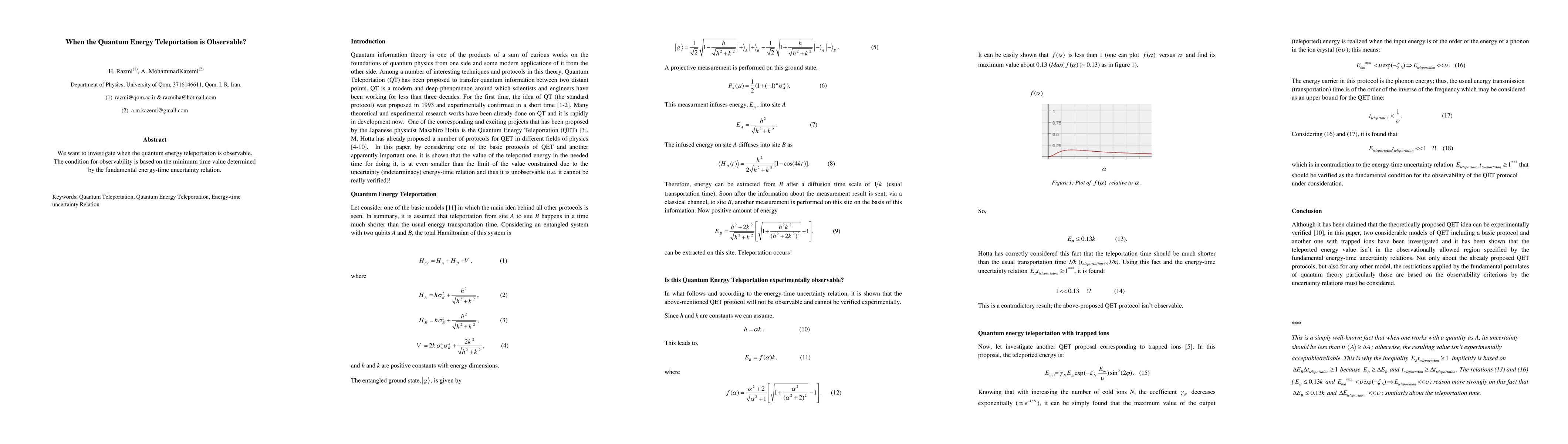 The paper presents a detailed analysis of two QET models, demonstrating that neither can be experimentally observed due to violations of the energy-time uncertainty relation.