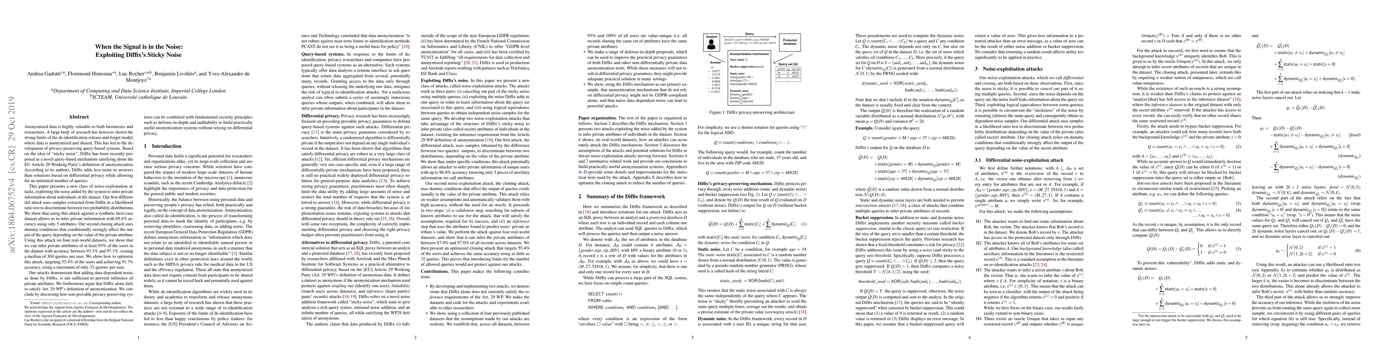 This paper introduces novel attacks exploiting the "sticky noise" mechanism of Diffix, a privacy-preserving query-based system, to infer private information. The attacks demonstrate significant success rates in inferring private attributes from both synthetic and real-world datasets, highlighting the inadequacy of Diffix in fully anonymizing data.