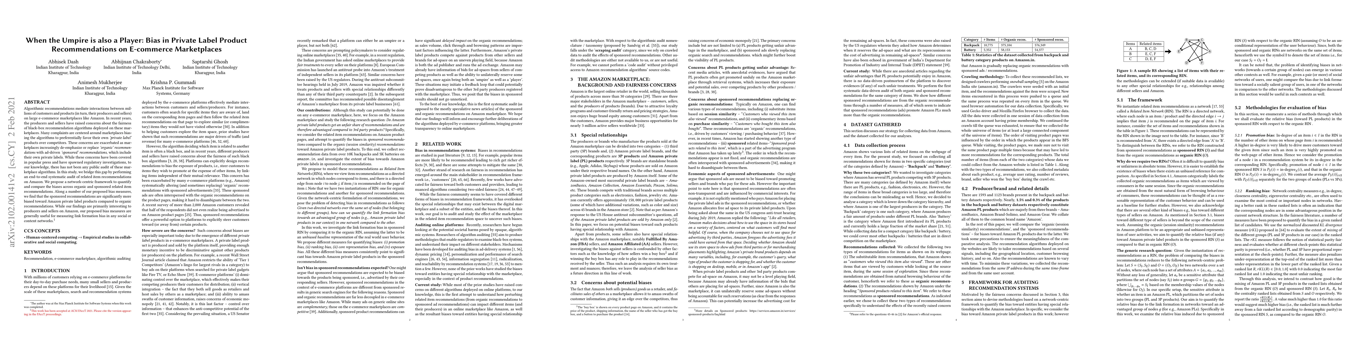 This study systematically audits Amazon's recommendation algorithms to assess bias favoring private label products over competitors. The findings show that sponsored recommendations are significantly more biased toward Amazon's private labels compared to organic recommendations, raising concerns about fairness in e-commerce marketplaces.