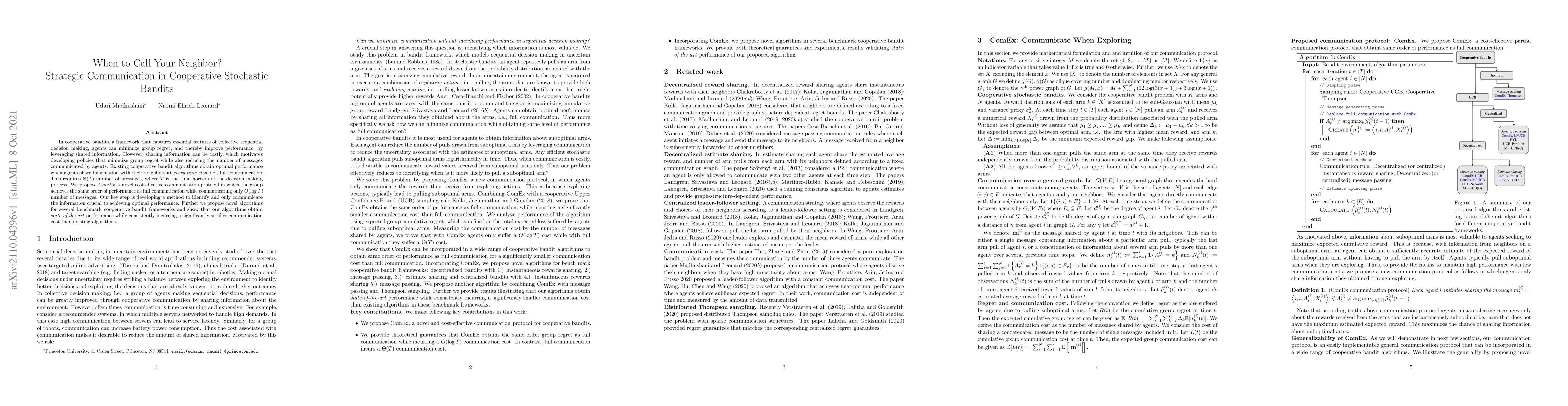 The research introduces ComEx, a communication protocol for cooperative bandits that balances optimal performance with reduced message costs. Unlike existing methods requiring $Theta(T)$ messages, ComEx communicates only $O(log T)$ messages by identifying and sharing only crucial information, achieving state-of-the-art performance with significantly less communication cost.