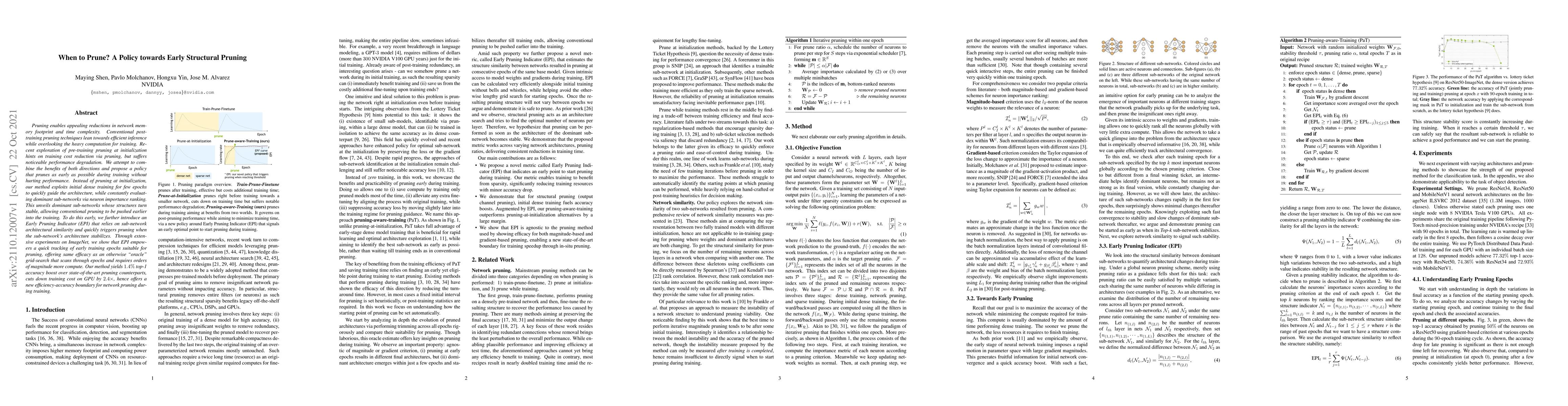 Pruning enables appealing reductions in network memory footprint and time complexity. Conventional post-training pruning techniques lean towards efficient inference while overlooking the heavy computation for training. Recent exploration of pre-training pruning at initialization hints on training cost reduction via pruning, but suffers noticeable performance degradation. We attempt to combine the benefits of both directions and propose a policy that prunes as early as possible during training without hurting performance. Instead of pruning at initialization, our method exploits initial dense training for few epochs to quickly guide the architecture, while constantly evaluating dominant sub-networks via neuron importance ranking. This unveils dominant sub-networks whose structures turn stable, allowing conventional pruning to be pushed earlier into the training. To do this early, we further introduce an Early Pruning Indicator (EPI) that relies on sub-network architectural similarity and quickly triggers pruning when the sub-network's architecture stabilizes. Through extensive experiments on ImageNet, we show that EPI empowers a quick tracking of early training epochs suitable for pruning, offering same efficacy as an otherwise ``oracle'' grid-search that scans through epochs and requires orders of magnitude more compute. Our method yields $1.4\%$ top-1 accuracy boost over state-of-the-art pruning counterparts, cuts down training cost on GPU by $2.4\times$, hence offers a new efficiency-accuracy boundary for network pruning during training.