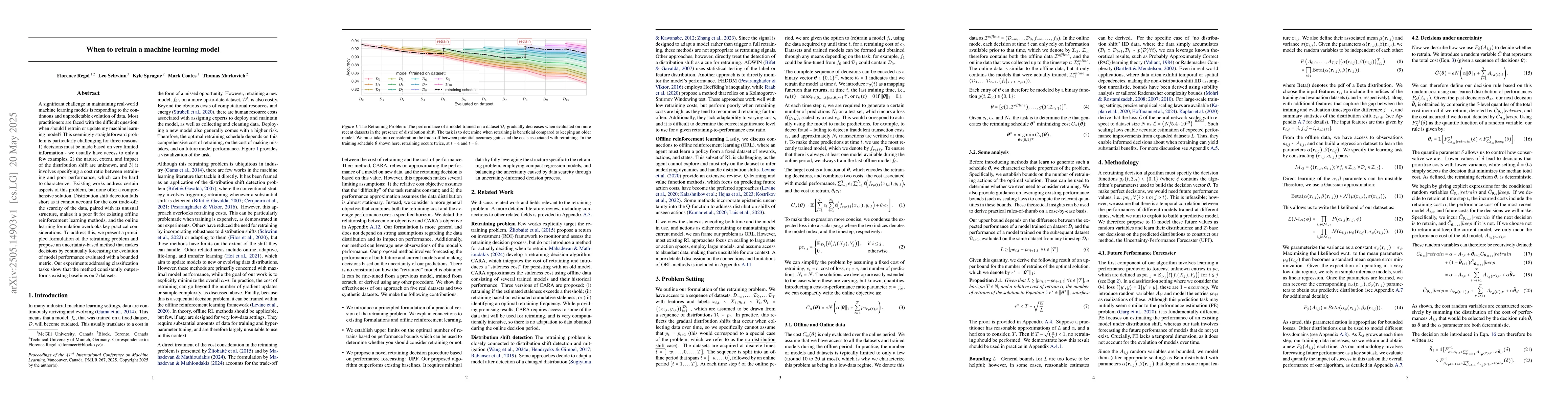 The paper presents a principled formulation of the retraining problem and proposes an uncertainty-based method that forecasts model performance evolution using a bounded metric.