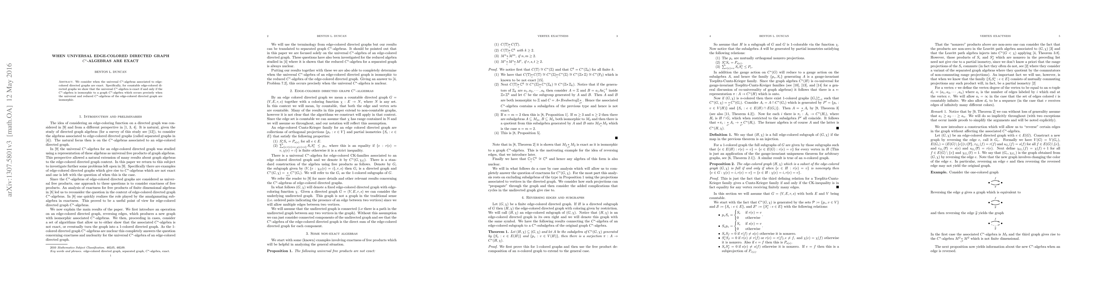 We consider when the universal $C^*$-algebras associated to edge-colored directed graphs are exact. Specifically, for countable edge-colored directed graphs we show that the universal $C^*$-algebra is exact if and only if the $C^*$-algebra is isomorphic to a graph $C^*$-algebra which occurs precisely when the universal and reduced $C^*$-algebras of the edge-colored directed graph are isomorphic.