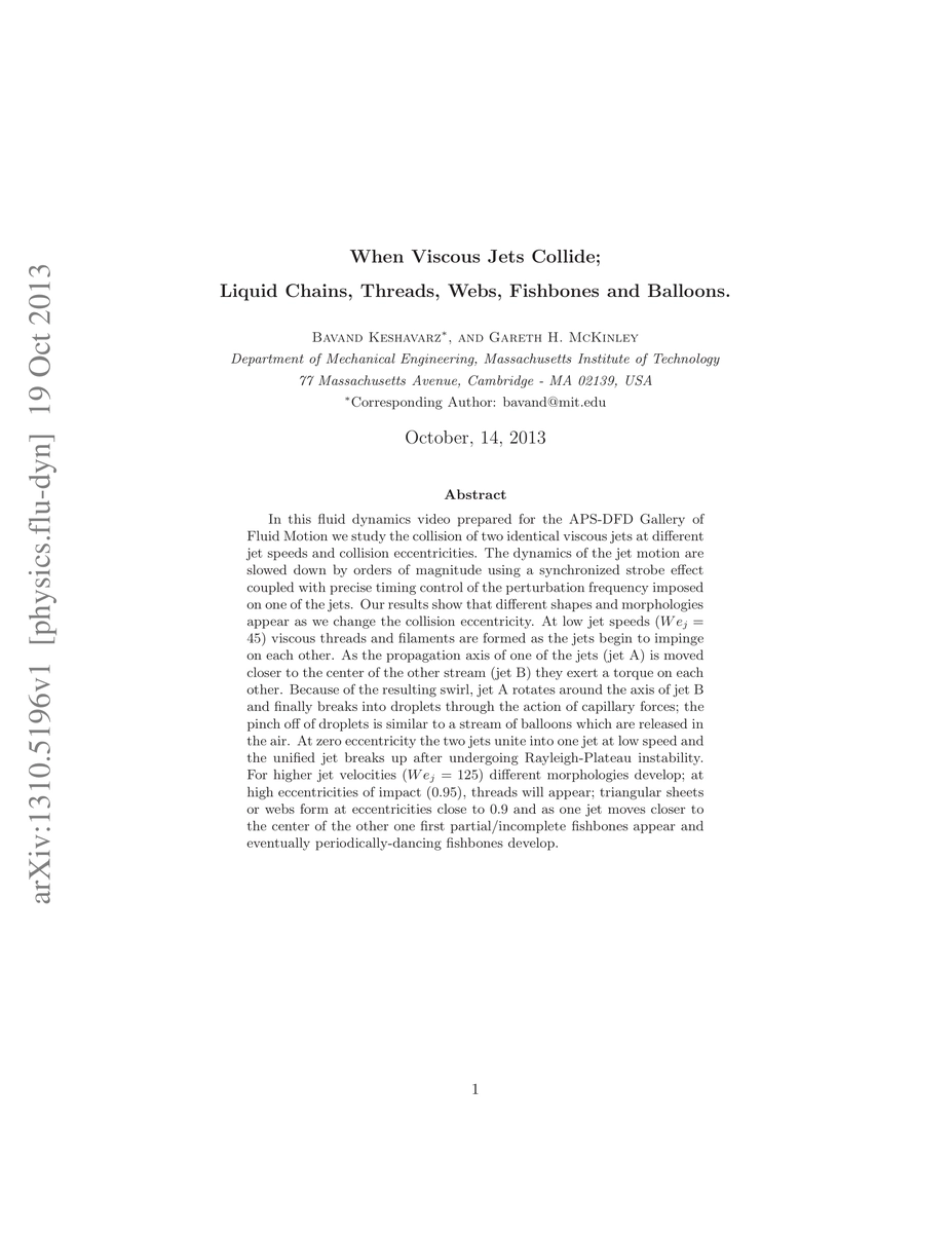 In this fluid dynamics video prepared for the APS-DFD Gallery of Fluid Motion we study the collision of two identical viscous jets at different jet speeds and collision eccentricities. The dynamics of the jet motion are slowed down by orders of magnitude using a synchronized strobe effect coupled with precise timing control of the perturbation frequency imposed on one of the jets. Our results show that different shapes and morphologies appear as we change the collision eccentricity. At low jet speeds ($We_j = 45$) viscous threads and filaments are formed as the jets begin to impinge on each other. As the propagation axis of one of the jets (jet A) is moved closer to the center of the other stream (jet B) they exert a torque on each other. Because of the resulting swirl, jet A rotates around the axis of jet B and finally breaks into droplets through the action of capillary forces; the pinch off of droplets is similar to a stream of balloons which are released in the air. At zero eccentricity the two jets unite into one jet at low speed and the unified jet breaks up after undergoing Rayleigh-Plateau instability. For higher jet velocities ($We_j=125$) different morphologies develop; at high eccentricities of impact (0.95), threads will appear; triangular sheets or webs form at eccentricities close to 0.9 and as one jet moves closer to the center of the other one first partial/incomplete fishbones appear and eventually periodically-dancing fishbones develop.