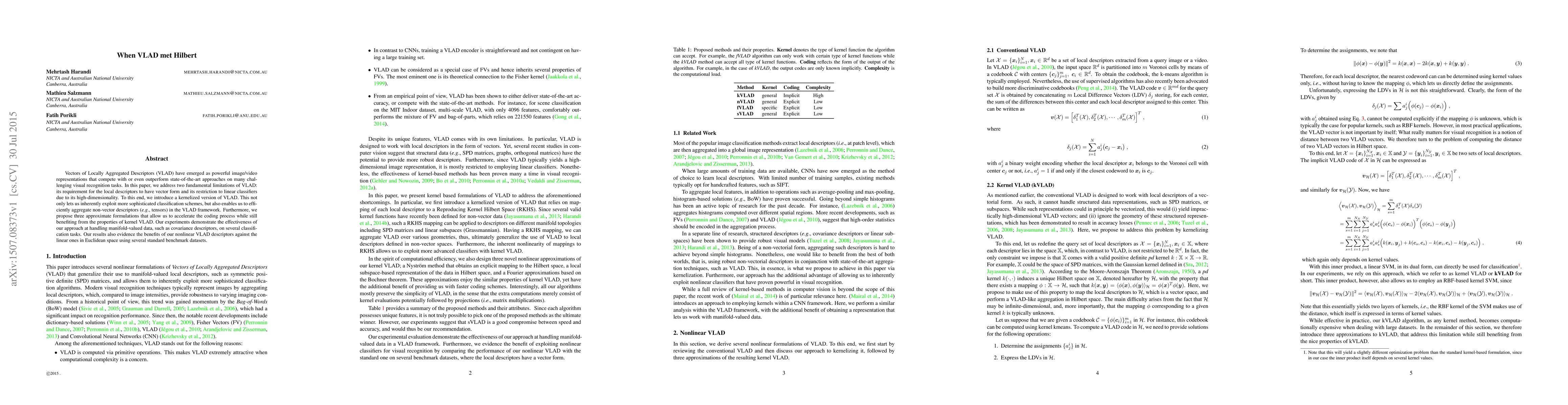 Researchers introduced a kernelized version of VLAD to address its limitations, enabling more sophisticated classification schemes and efficient aggregation of non-vector descriptors. The approach demonstrated effectiveness in handling manifold-valued data and showed benefits of nonlinear VLAD descriptors over linear ones.