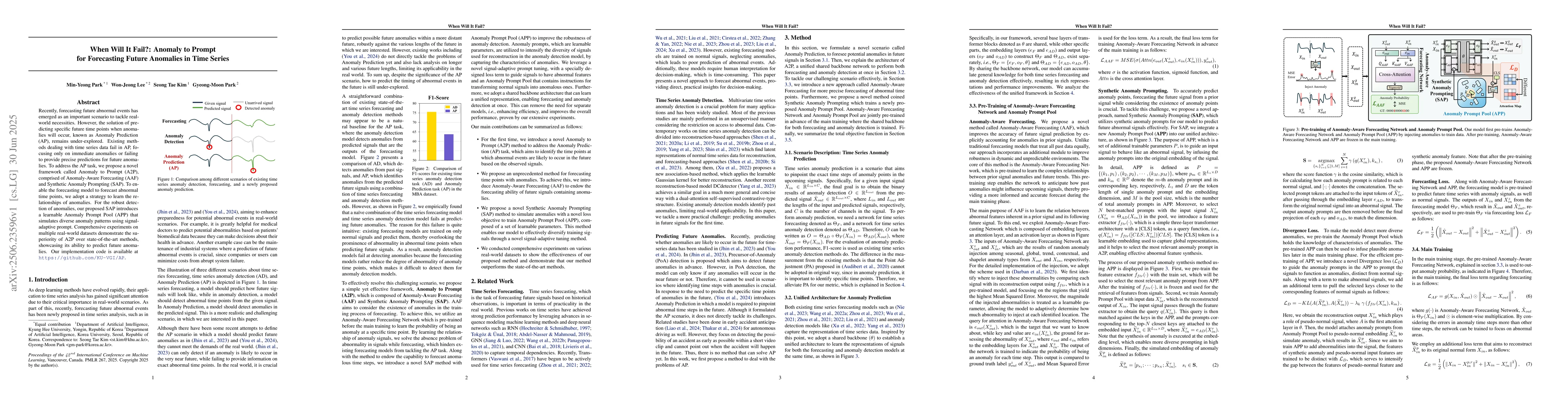 Recently, forecasting future abnormal events has emerged as an important scenario to tackle real-world necessities. However, the solution of predicting specific future time points when anomalies will occur, known as Anomaly Prediction (AP), remains under-explored. Existing methods dealing with time series data fail in AP, focusing only on immediate anomalies or failing to provide precise predictions for future anomalies. To address the AP task, we propose a novel framework called Anomaly to Prompt (A2P), comprised of Anomaly-Aware Forecasting (AAF) and Synthetic Anomaly Prompting (SAP). To enable the forecasting model to forecast abnormal time points, we adopt a strategy to learn the relationships of anomalies. For the robust detection of anomalies, our proposed SAP introduces a learnable Anomaly Prompt Pool (APP) that simulates diverse anomaly patterns using signal adaptive prompt. Comprehensive experiments on multiple real-world datasets demonstrate the superiority of A2P over state-of-the-art methods, showcasing its ability to predict future anomalies. Our implementation code is available at https://github.com/KU-VGI/AP.
