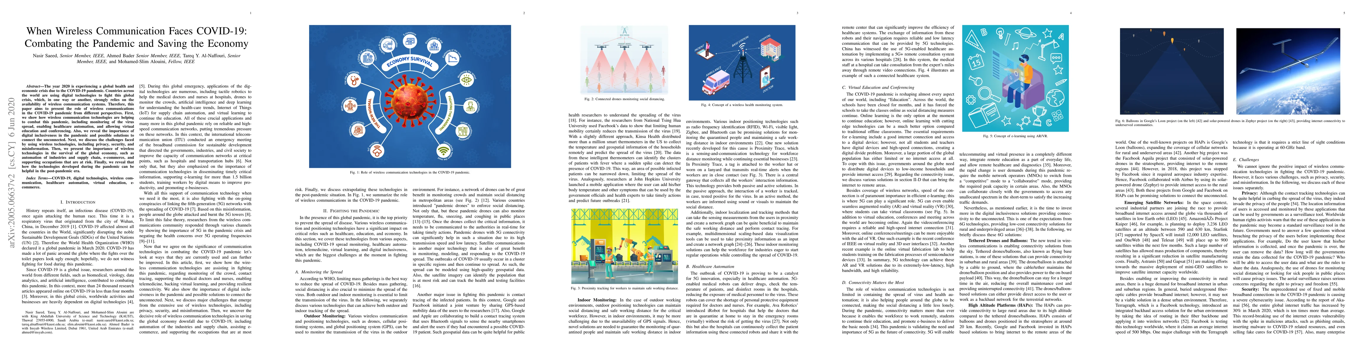 This paper explores the pivotal role of wireless communications in battling the COVID-19 pandemic, highlighting its use in virus tracking, healthcare automation, and remote education. It also underscores the economic importance of these technologies in maintaining industrial automation, e-commerce, and sustaining at-risk jobs. The study discusses challenges like privacy, security, and misinformation, while envisioning post-pandemic benefits from current technological advancements.