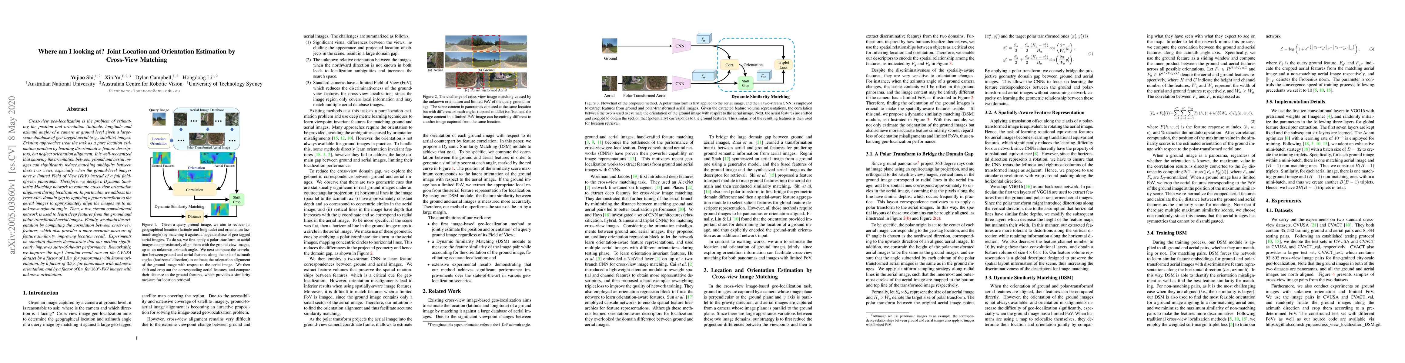 Cross-view geo-localization is the problem of estimating the position and orientation (latitude, longitude and azimuth angle) of a camera at ground level given a large-scale database of geo-tagged aerial (e.g., satellite) images. Existing approaches treat the task as a pure location estimation problem by learning discriminative feature descriptors, but neglect orientation alignment. It is well-recognized that knowing the orientation between ground and aerial images can significantly reduce matching ambiguity between these two views, especially when the ground-level images have a limited Field of View (FoV) instead of a full field-of-view panorama. Therefore, we design a Dynamic Similarity Matching network to estimate cross-view orientation alignment during localization. In particular, we address the cross-view domain gap by applying a polar transform to the aerial images to approximately align the images up to an unknown azimuth angle. Then, a two-stream convolutional network is used to learn deep features from the ground and polar-transformed aerial images. Finally, we obtain the orientation by computing the correlation between cross-view features, which also provides a more accurate measure of feature similarity, improving location recall. Experiments on standard datasets demonstrate that our method significantly improves state-of-the-art performance. Remarkably, we improve the top-1 location recall rate on the CVUSA dataset by a factor of 1.5x for panoramas with known orientation, by a factor of 3.3x for panoramas with unknown orientation, and by a factor of 6x for 180-degree FoV images with unknown orientation.
