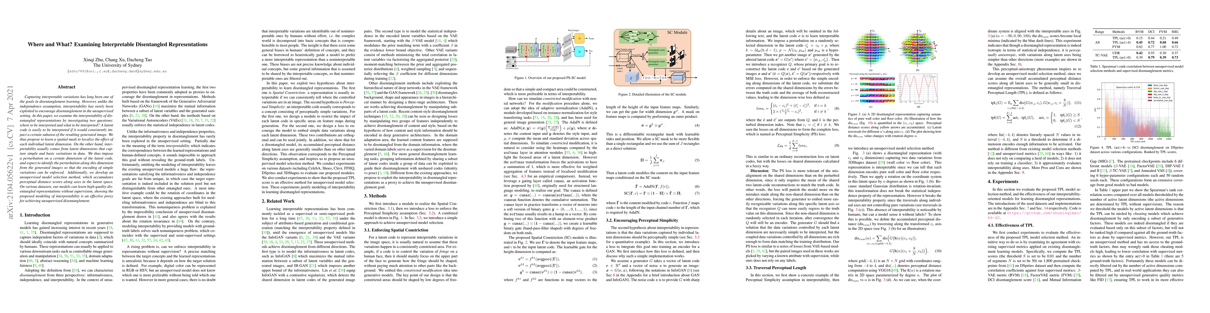 This paper investigates how to enhance interpretability in disentangled representations by determining where and what aspects to interpret. It proposes a spatial mask to localize latent dimensions' effects and a method to enforce simple variations, demonstrating effective unsupervised disentanglement.