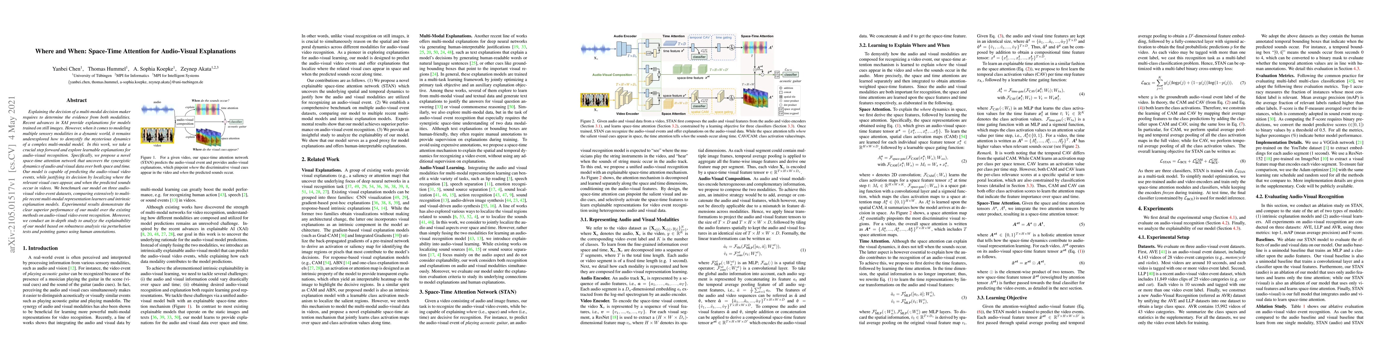This paper proposes a space-time attention network to provide learnable explanations for audio-visual recognition, localizing relevant visual cues and sound timing in dynamic video events. The model outperforms existing methods on audio-visual event recognition and demonstrates robust explainability through perturbation tests and human annotation studies.