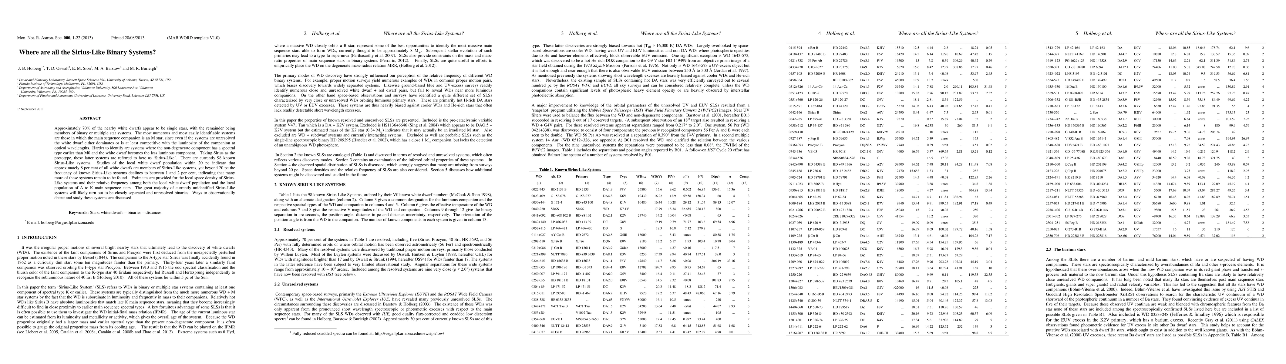 Approximately 70 percent of the nearby white dwarfs appear to be single stars, with the remainder being members of binary or multiple star systems. The most numerous and most easily identifiable systems are those in which the main sequence companion is an M star, since even if the systems are unresolved the white dwarf either dominates or is at least competitive with the luminosity of the companion at optical wavelengths. Harder to identify are systems where the non-degenerate component has a spectral type earlier than M0 and the white dwarf becomes the less luminous component. Taking Sirius as the prototype, these latter systems are referred to here as Sirius-Like. There are currently 98 known Sirius-Like systems. Studies of the local white dwarf population within 20 parsecs indicate that approximately 8 per cent of all white dwarfs are members of Sirius-Like systems, yet beyond 20 parsecs the frequency of known Sirius-Like systems declines to between 1 and 2 per cent, indicating that many more of these systems remain to be found. Estimates are provided for the local space density of Sirius- Like systems and their relative frequency among both the local white dwarf population and the local population of A to K main sequence stars. The great majority of currently unidentified Sirius-Like systems will likely turn out to be closely separated and unresolved binaries. Ways to observationally detect and study these systems are discussed.