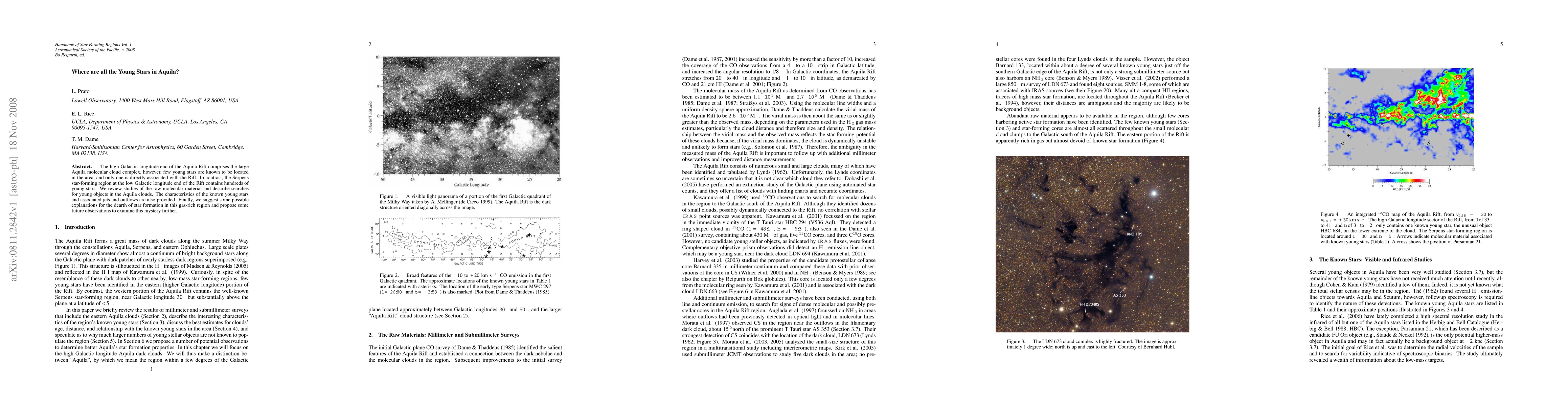 The high Galactic longitude end of the Aquila Rift comprises the large Aquila molecular cloud complex, however, few young stars are known to be located in the area, and only one is directly associated with the Rift. In contrast, the Serpens star-forming region at the low Galactic longitude end of the Rift contains hundreds of young stars. We review studies of the raw molecular material and describe searches for young objects in the Aquila clouds. The characteristics of the known young stars and associated jets and outflows are also provided. Finally, we suggest some possible explanations for the dearth of star formation in this gas-rich region and propose some future observations to examine this mystery further.
