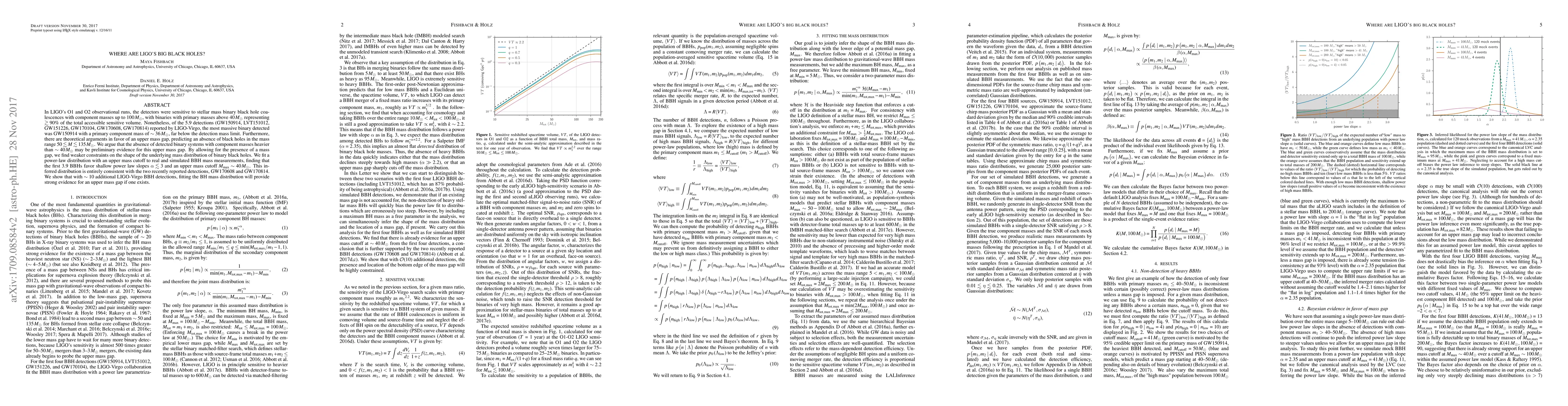 The paper discusses the absence of detected binary black holes (BBH) with component masses above 40 solar masses in LIGO's O1 and O2 runs, suggesting preliminary evidence for a theoretical upper mass gap in the black hole mass distribution. The analysis supports a power-law distribution with a cutoff at around 40 solar masses, indicating that more detections will provide stronger evidence for this gap.