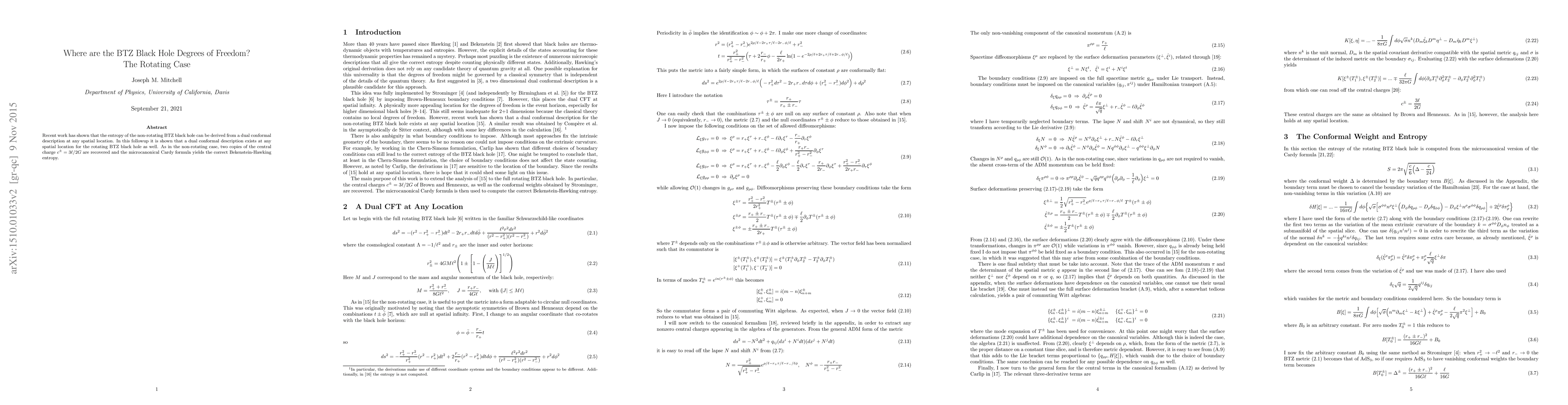 Recent work has shown that the entropy of the non-rotating BTZ black hole can be derived from a dual conformal description at any spatial location. In this followup it is shown that a dual conformal description exists at any spatial location for the rotating BTZ black hole as well. As in the non-rotating case, two copies of the central charge $c^{\pm} = 3\ell/2G$ are recovered and the microcanonical Cardy formula yields the correct Bekenstein-Hawking entropy.