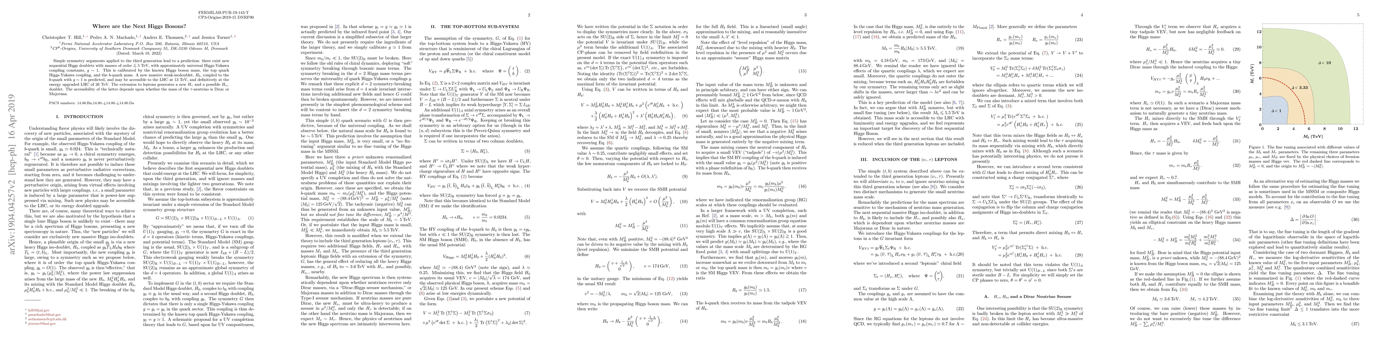 Simple symmetry arguments applied to the third generation lead to a prediction: there exist new sequential Higgs doublets with masses of order $\lesssim 5 $ TeV, with approximately universal Higgs-Yukawa coupling constants, $g\sim 1$. This is calibrated by the known Higgs boson mass, the top quark Higgs-Yukawa coupling, and the $b$-quark mass. A new massive weak-isodoublet, $H_b$, coupled to the $b$-quark with $g\sim 1$ is predicted, and may be accessible to the LHC at $13$ TeV, and definitively at the energy upgraded LHC of $26$ TeV. The extension to leptons generates a new $H_\tau$ and a possible $H_{\nu_\tau}$ doublet. The accessibility of the latter depends upon whether the mass of the $\tau$-neutrino is Dirac or Majorana.