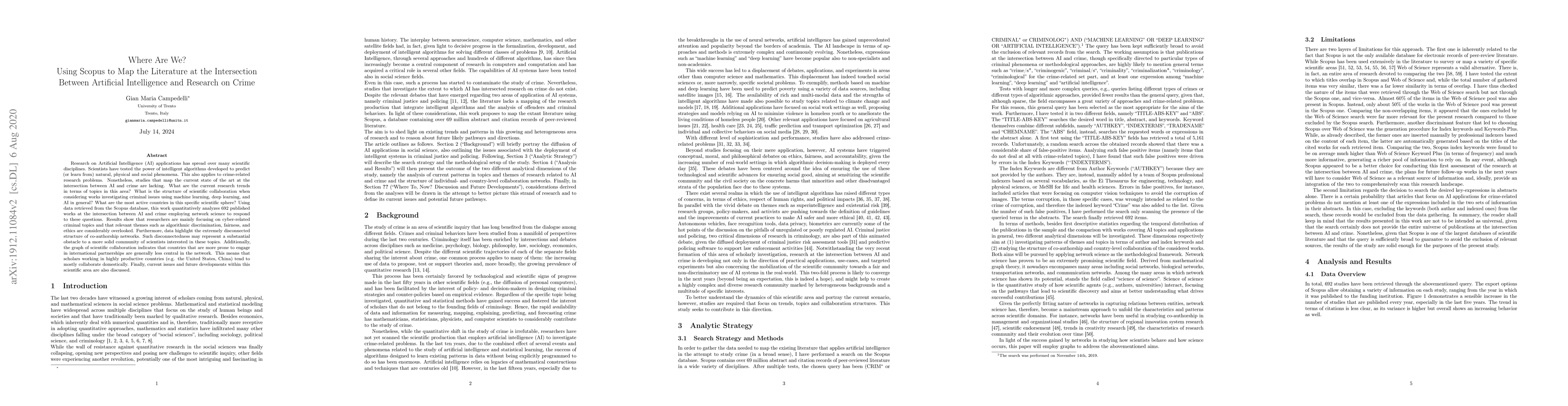 This paper uses Scopus data to map the intersection of Artificial Intelligence (AI) and crime research, revealing a focus on cyber-crime with neglected themes like algorithmic fairness. It highlights a fragmented co-authorship network, indicating limited international collaboration, with major productive countries favoring domestic partnerships.