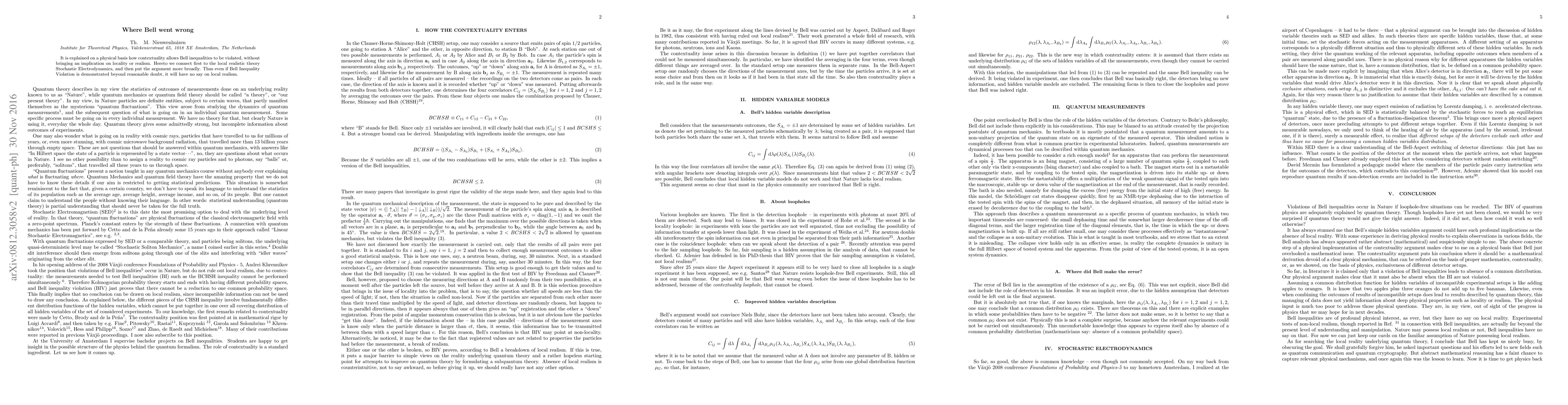 It is explained on a physical basis how contextuality allows Bell inequalities to be violated, without bringing an implication on locality or realism. The point is that the initial values of the hidden variables of the detectors are mutually exclusive for different detector settings. Therefore they have no reason to possess a common probability distribution and hence no reason to satisfy Bell inequalities. To motivate this, we connect first to the local realistic theory Stochastic Electrodynamics, and then put the argument more broadly. Thus even if Bell Inequality Violation is demonstrated beyond reasonable doubt, it will have no say on local realism.